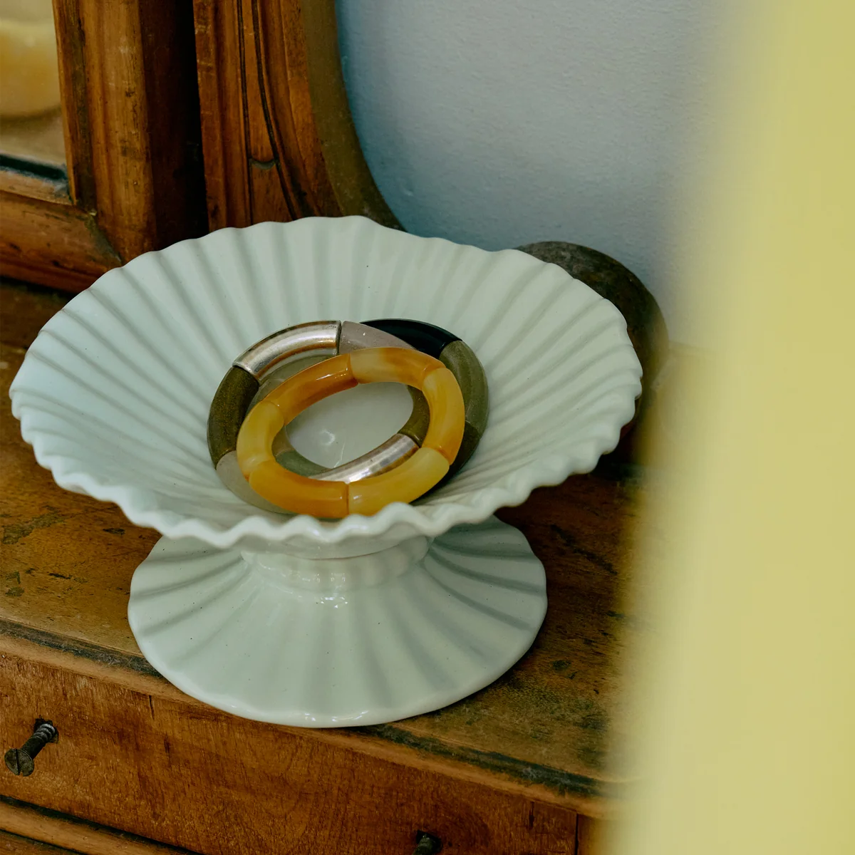 The New Classics Ribble bowl with base from HKliving impresses with its clear design language and calm, matt glaze. With its raised position and softly sculpted silhouette, it looks like a design object and is equally suitable for serving, decorating or stylishly arranging small objects. The model brings subtle color into the room and blends harmoniously into various interiors - timeless, functional and with a touch of sculptural elegance.