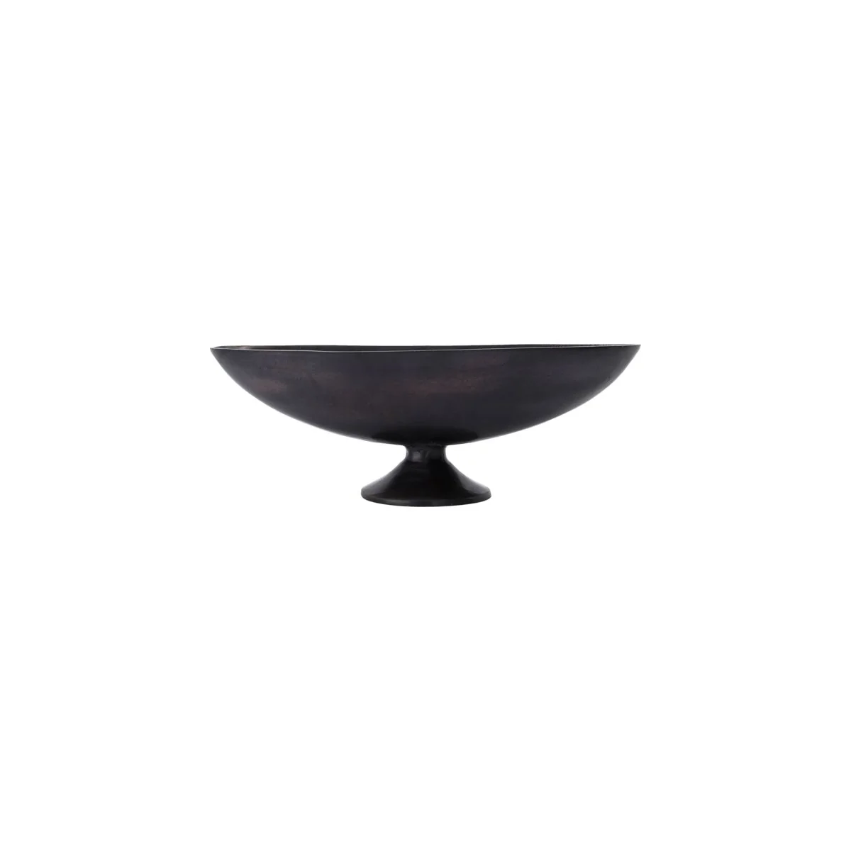 The Foy deco bowl from House Doctor becomes the focal point of the interior. On a dining table or sideboard, the oval shaped bowl can be filled and combined with numerous decorations. The large decorative bowl is made of aluminum and covered with a dark brass glaze, which provides a special structure of the bowl. A great highlight is the small foot that lifts the oval bowl into the air.