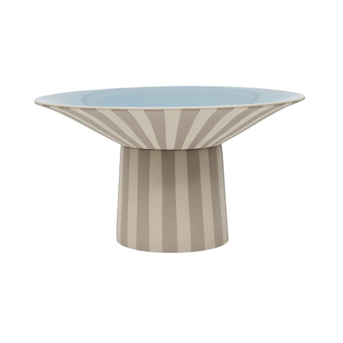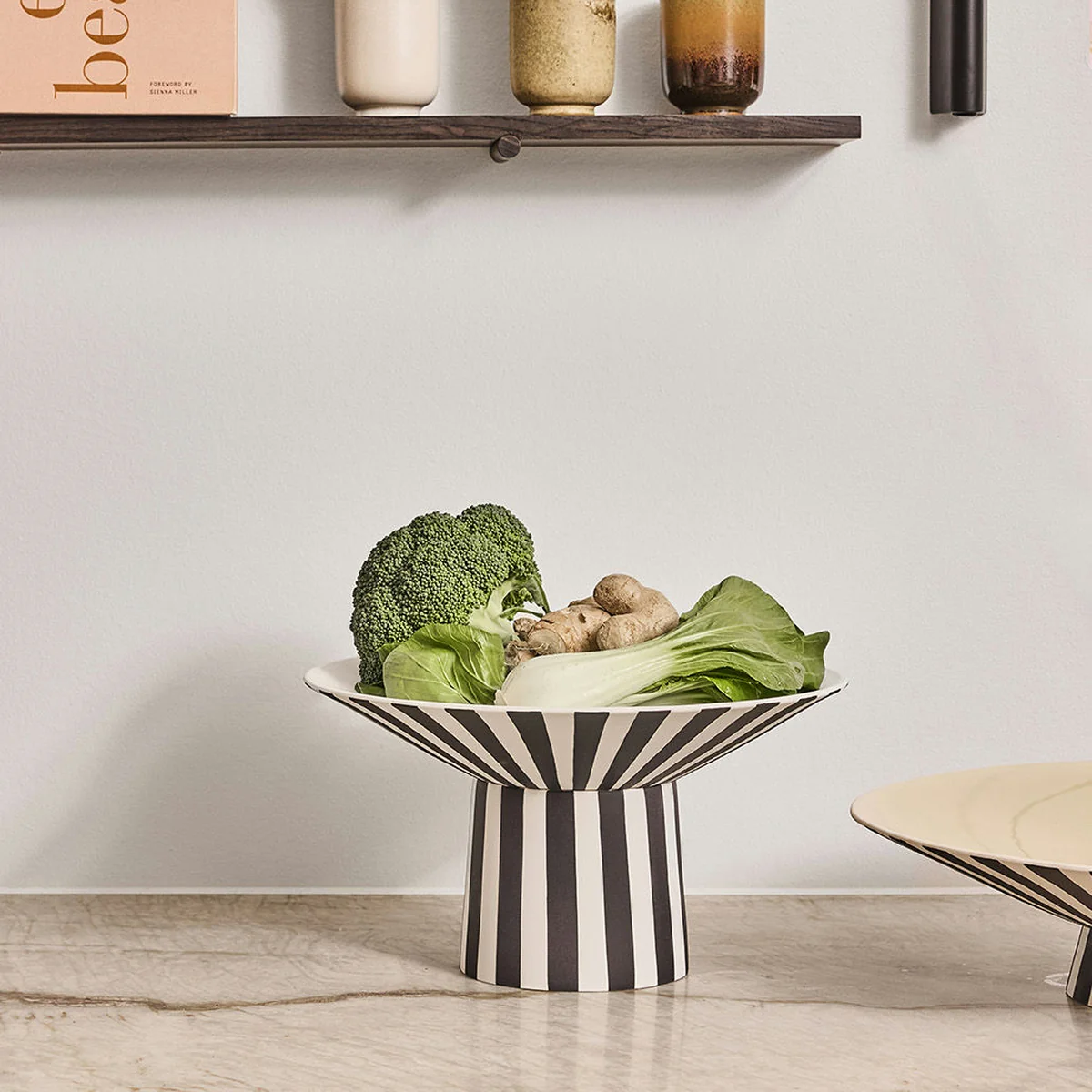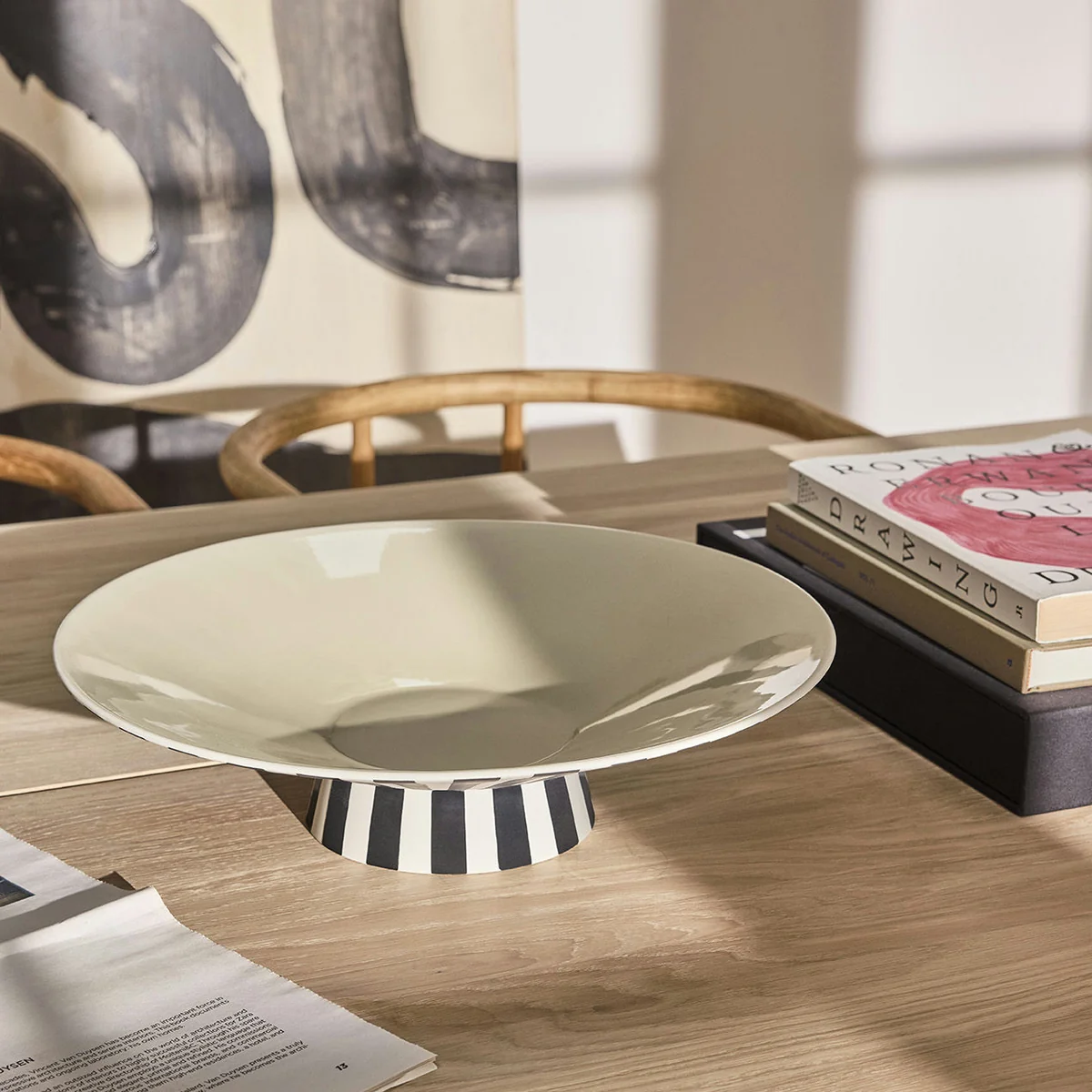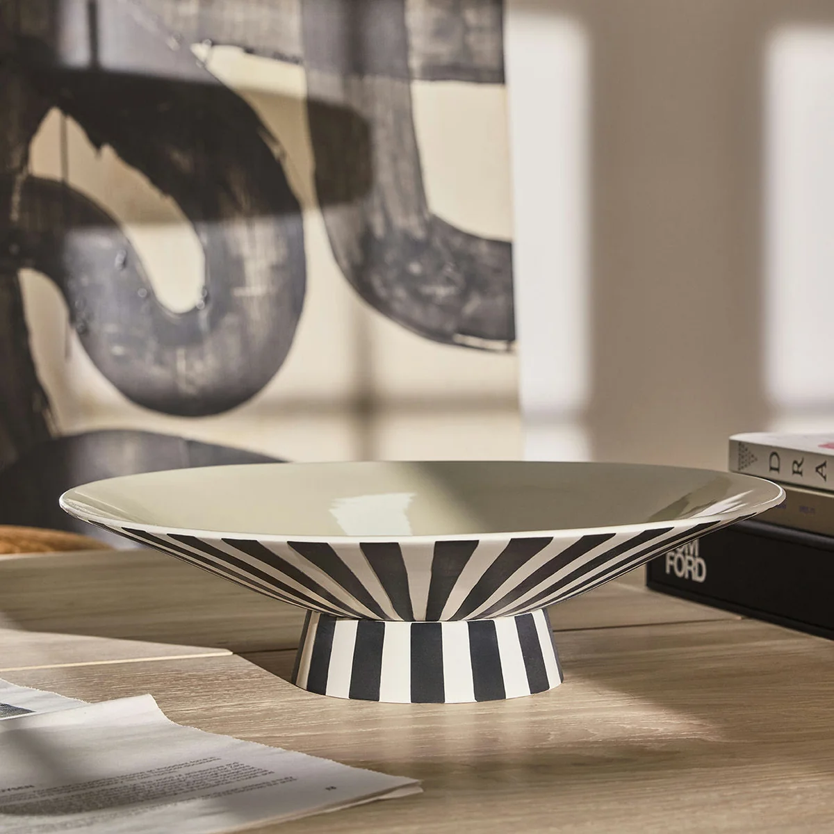 The Toppu Centerpiece decorative bowl with foot is a sculptural highlight that adds a stylish, playful touch to any table with its hand-painted, vibrant stripes. Whether as a decorative bowl, serving bowl or for storing small objects - this unique design piece combines functionality with art.
