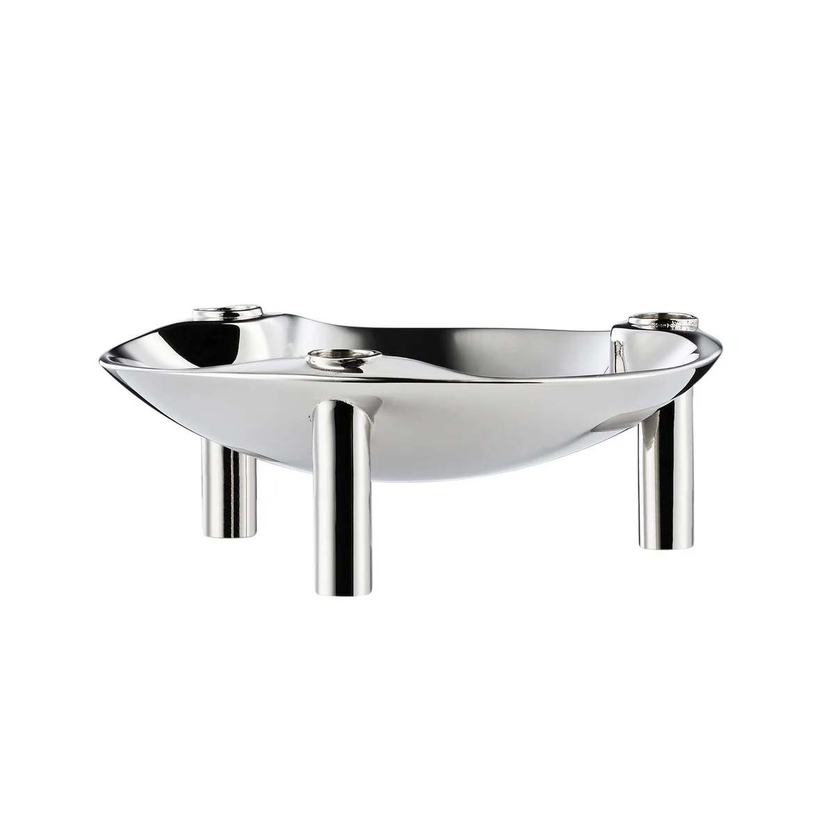 Both alone and plugged together and with or without candles, the bowl looks timelessly elegant. It is available in brass, chrome or steel, painted in a matte black, and looks great on the dining table, on the shelf or on a side table. In it, keys, fine jewelry, home-baked cookies and much more will find a stylish place.