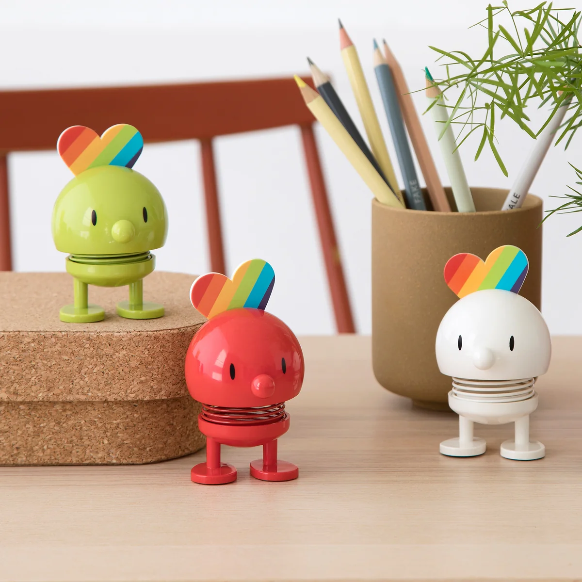 The Rainbow decorative figure from Hoptimist present themselves in your most beautiful splendor, adorned by harmonious rainbow colors. As a sign of diversity, they present an important symbol and thus carry a lot of meaning. The classic Hoptimist wiggle figurines carry a small heart on the back of their heads, which gives them a cute look. The figures are wonderful to place on the dashboard, in the study, on the workbench or on the desk.
