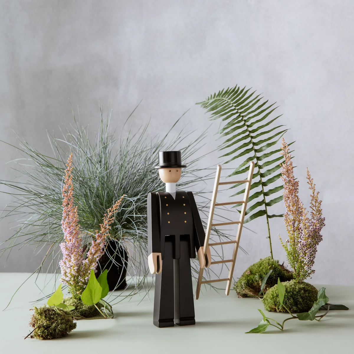 It brings good luck to see them. Because not infrequently they disappear for many hours in the fireplace and come out again as pitch-black figures. Chimney sweeps are also part of the repertoire of legendary wooden figures from the Danish design icon Kay Bojesen. With a stylish and distinguished top hat and a detailed ladder in his hand, the nice chimney sweep gives a playful impression and can be perfectly combined with other figures by Kay Bojesen.