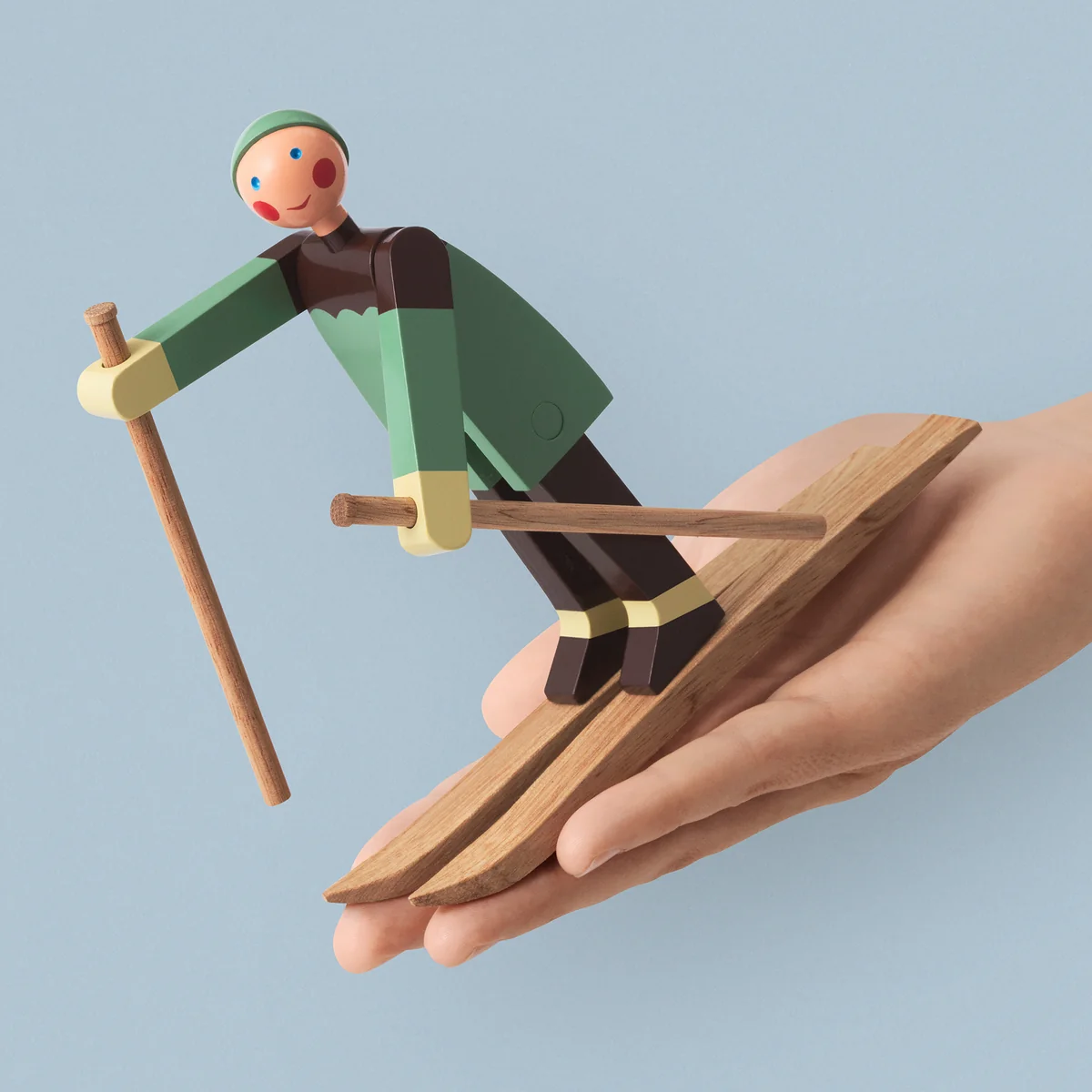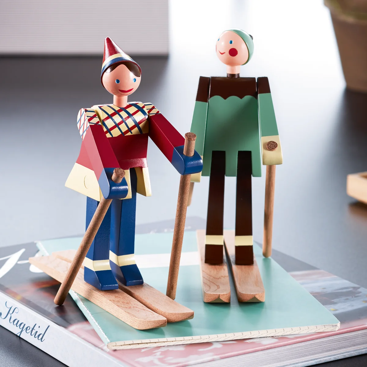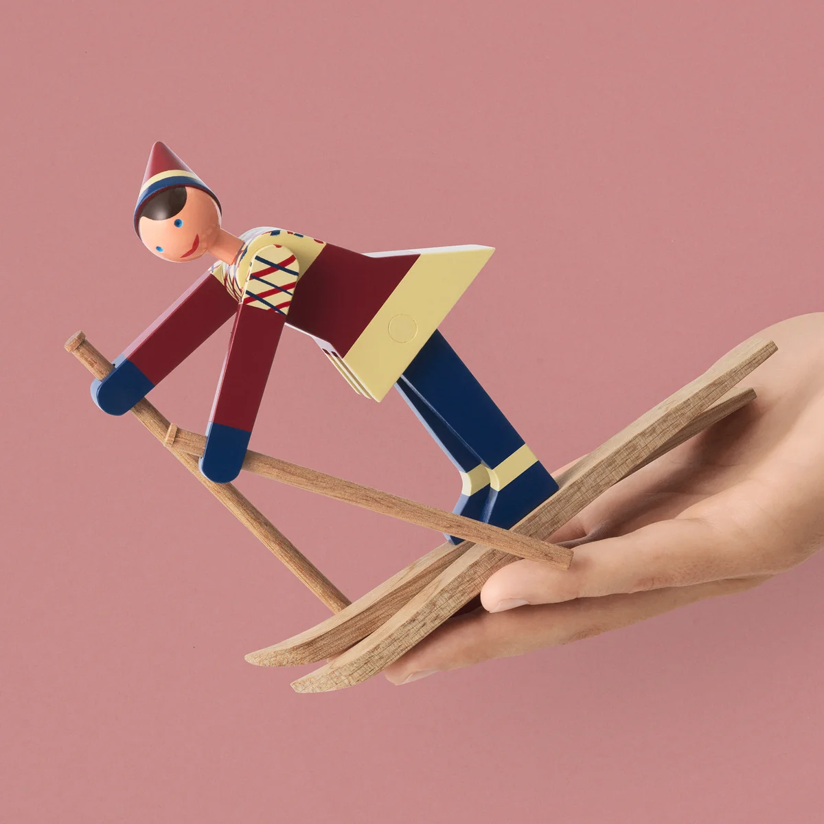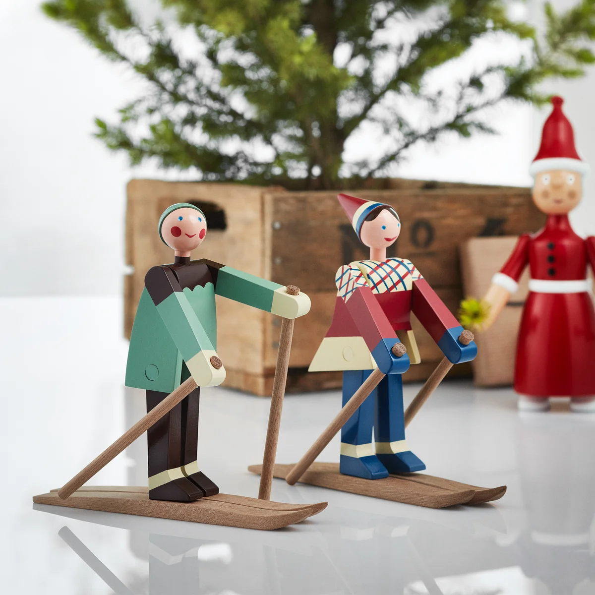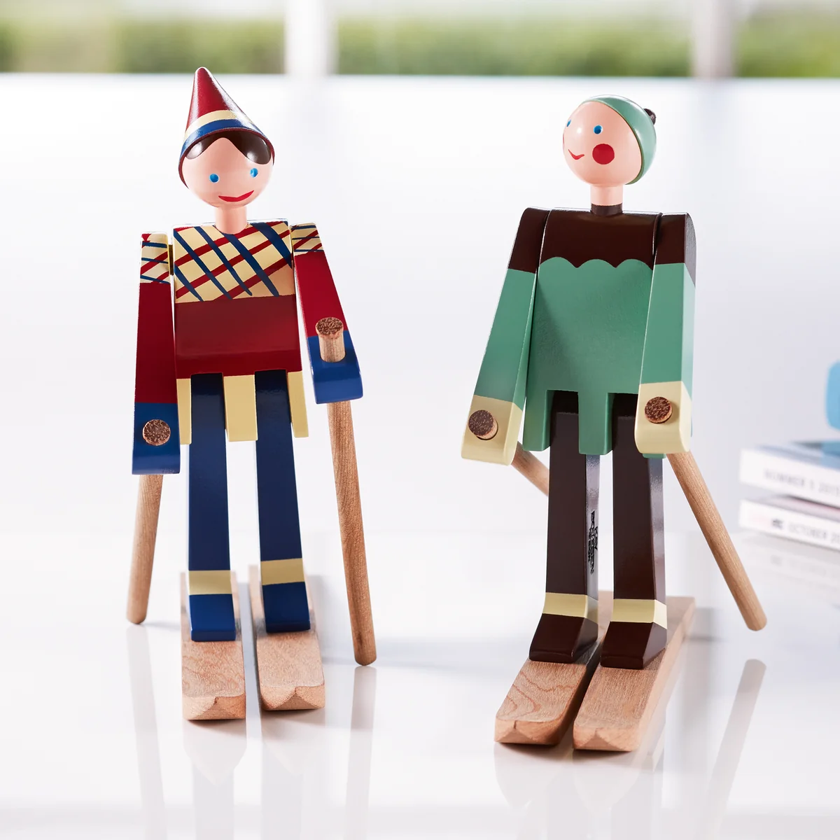 The skiers of Kay Bojesen are a new edition of the cute design by the Danish designer from the 1940s and will soon be whizzing into your living room! The one with the red cap and checkered jacket is called Boje, named after Kay Bojesen s son Otto, who is nicknamed after him. His colleague bears the nickname of Otto's wife Ruth - Datti. The two cheeky skiers were originally only produced in small series, which is why the original wooden figures are now real rarities. The new edition of the skier is made of painted beech.
