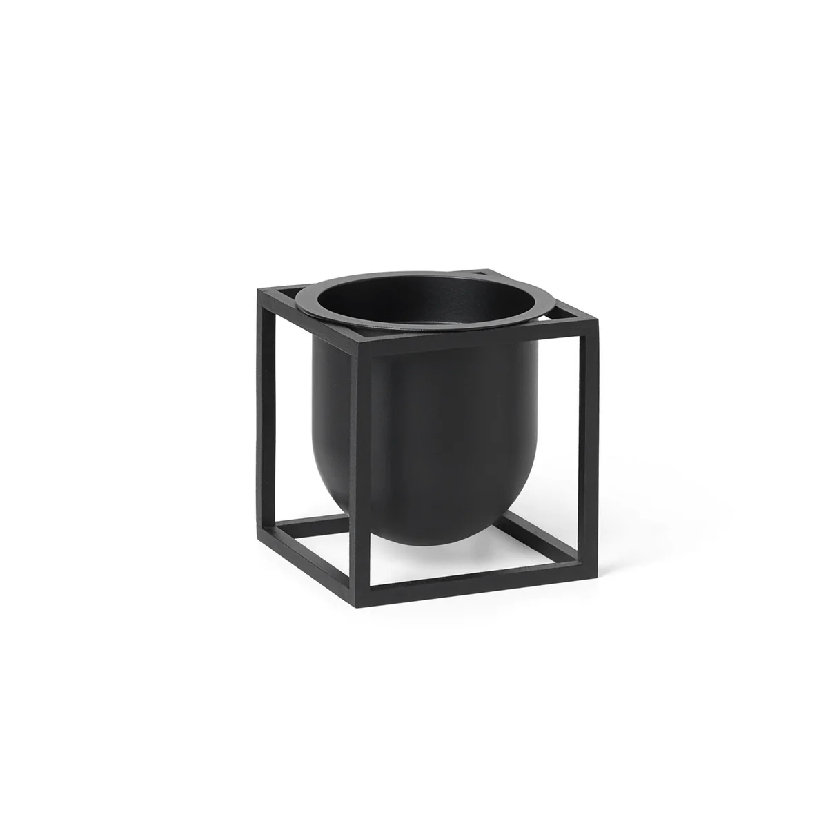 The Flowerpot is made of powder-coated metal in various colors. The round container is thereby typically for the Kubus series held by the angular, geometric frame. On the side table in the bedroom or hallway, the sideboard in the living room or on the garden table, the pot makes a beautiful figure. An insert keeps the flowers and plants in an upright position. With a matching wall mount, which is available separately, the Flowerpot can also be mounted on the wall.