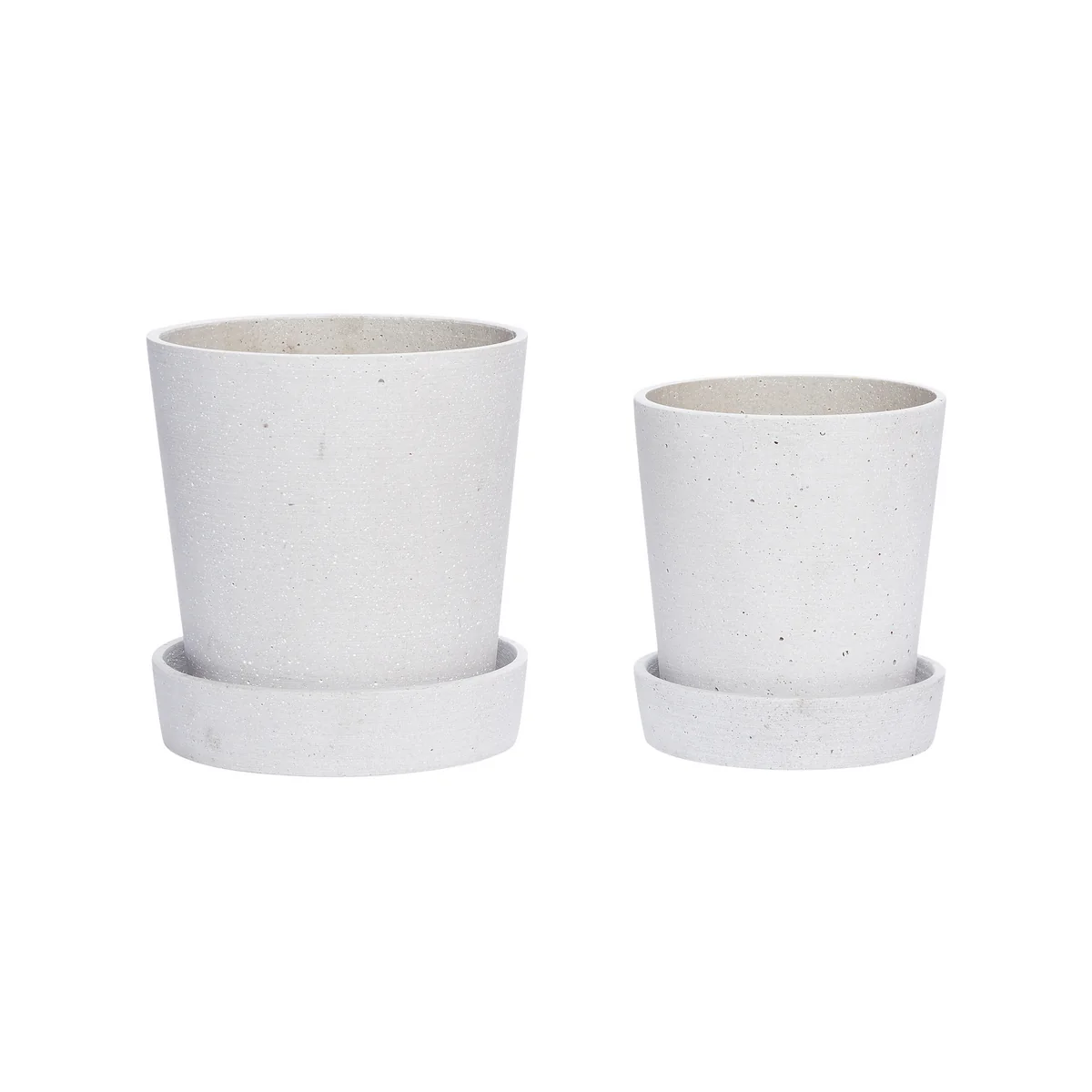 The plant pot with saucer from Hübsch Interior is made of stone and comes in a set of 2. Available in different colours and sizes.