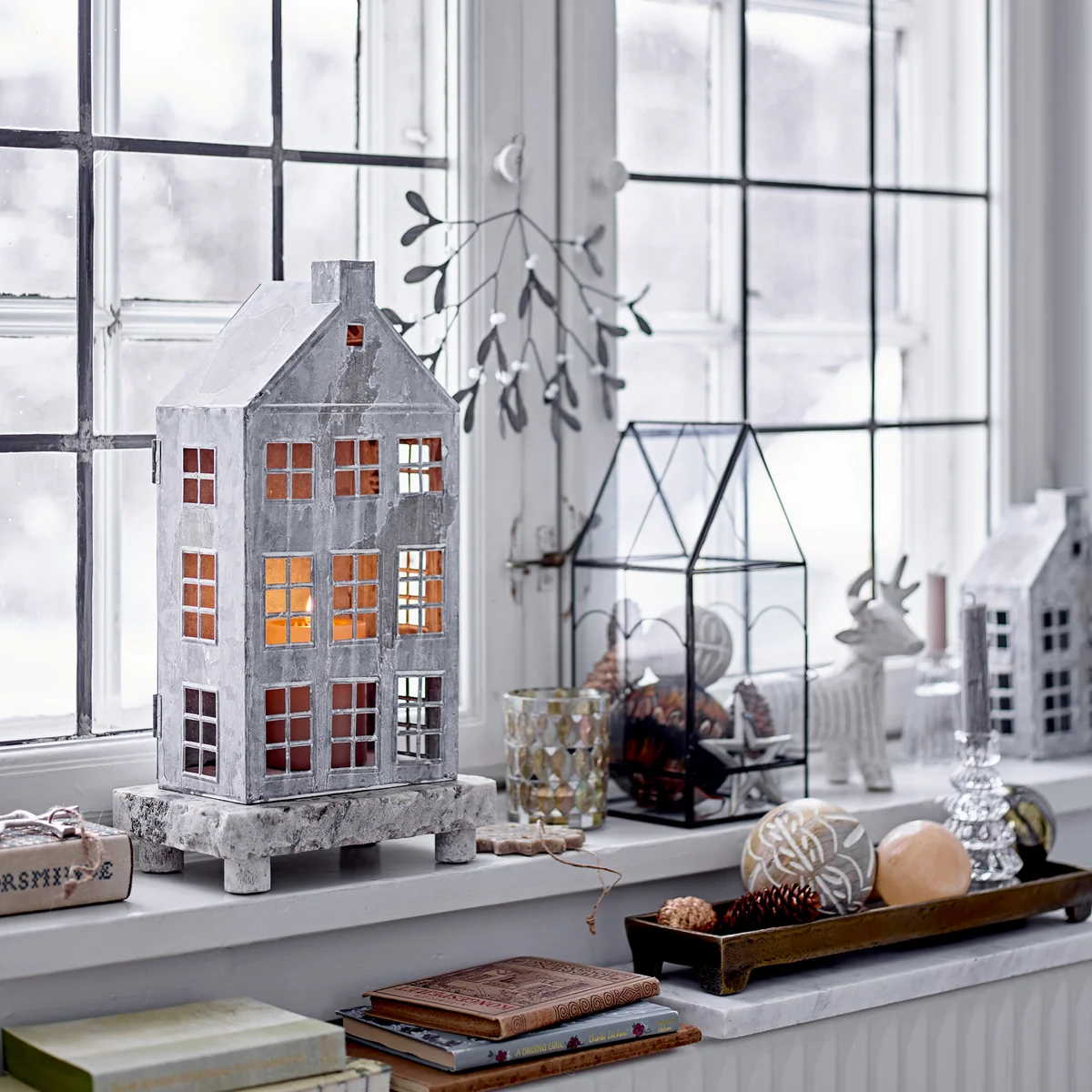 The Heidrun lanterns from Bloomingville are a set of two cozy lanterns shaped like two small houses. They are made of metal in a gray shade. The small windows and doors will spread coziness and brighten up the dark evenings. After use, they can be stored inside each other.