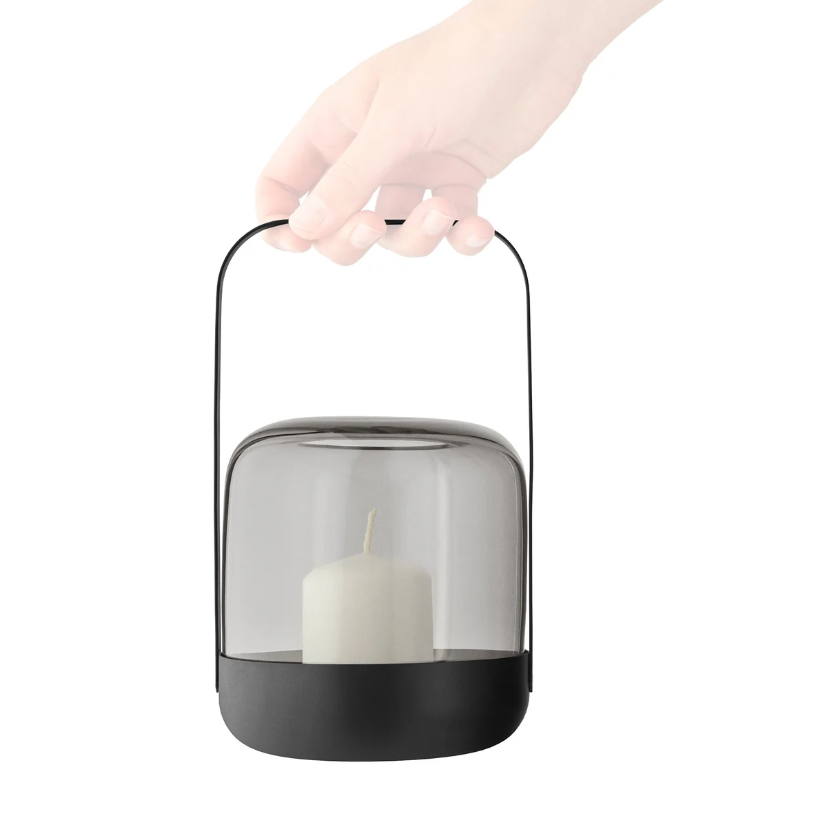 The Acorn lantern from the house Eva Solo provides for cozy moments indoors and outdoors. The practical carrying handle made of powder-coated steel allows the lantern to be carried flexibly. If the glass is lifted, the tea light can be lit easily. The hand-blown glass is available in various designs.