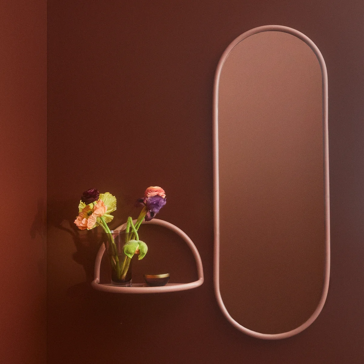 The Angui Wall mirror from AYTM is a very simple home accessory that fits perfectly into any environment. The narrow frame of the oval mirror is made of aluminum and is available in various lacquer finishes. Thanks to its classic shape, the mirror can be used in many ways and in the small version, for example, it will find a place in the bathroom above the sink. In the large version, on the other hand, the full-length mirror can be used in the hallway or bedroom.