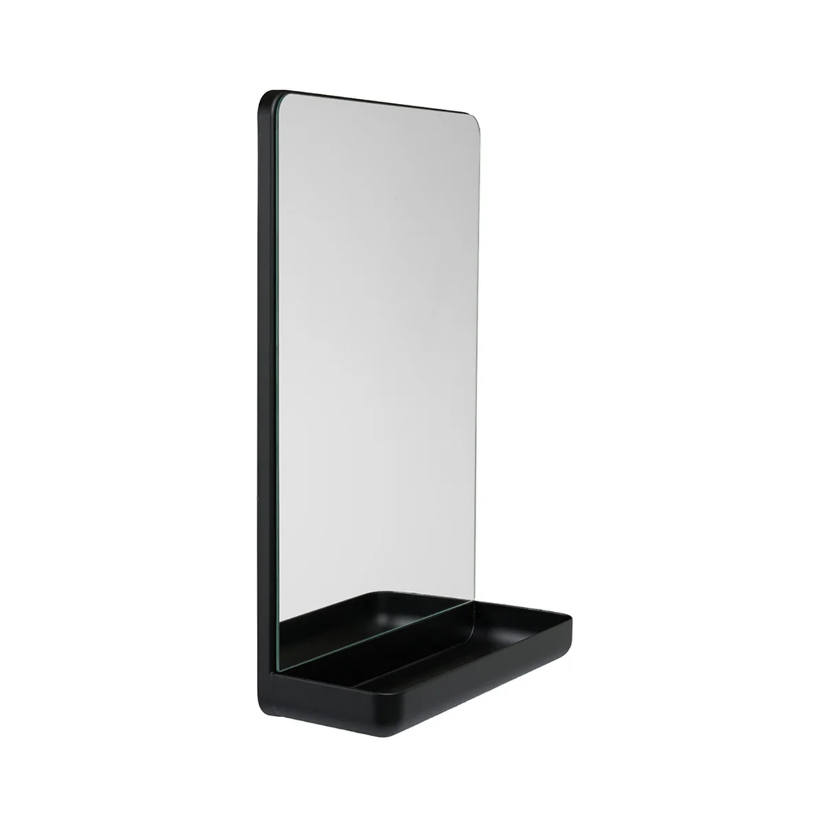 The Design Letters hanging or standing mirror with shelf embodies a successful symbiosis of style and practicality. Its modern Scandinavian design integrates effortlessly into various room concepts and at the same time provides a practical storage space for personal items.
