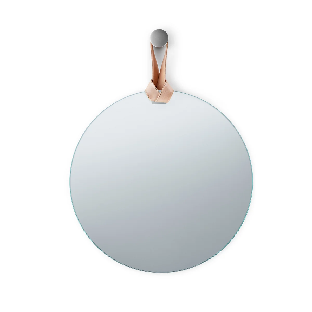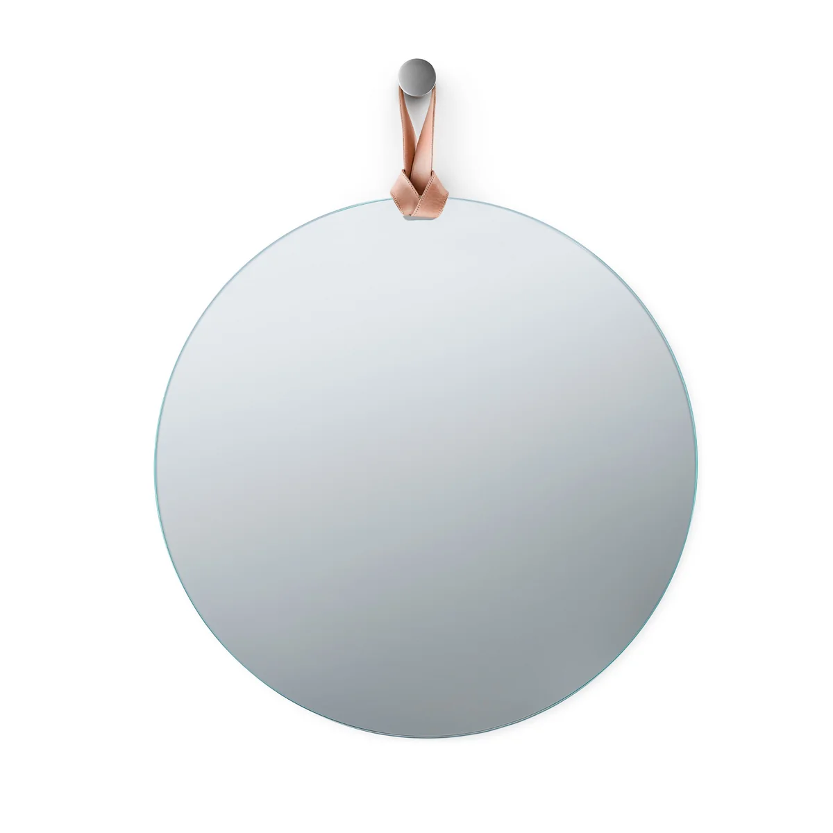 The Rope wall mirror by Eva Solo is a round mirror with decorative details that blends in well with various ambiences. The mirror consists of round polished mirror glass and a decorative suspension of core leather. The strong leather strap is an expressive detail that can be used to hang the mirror anywhere.