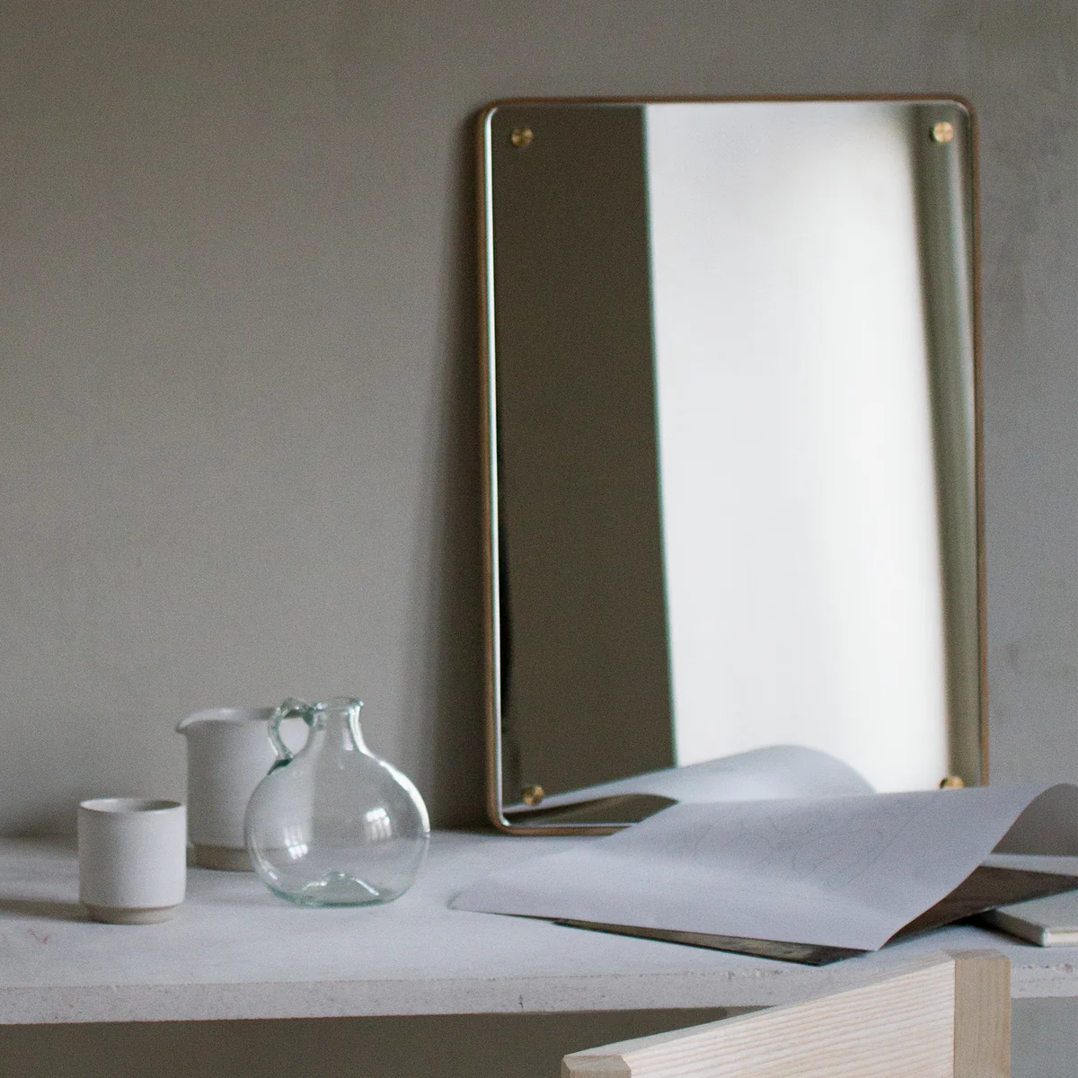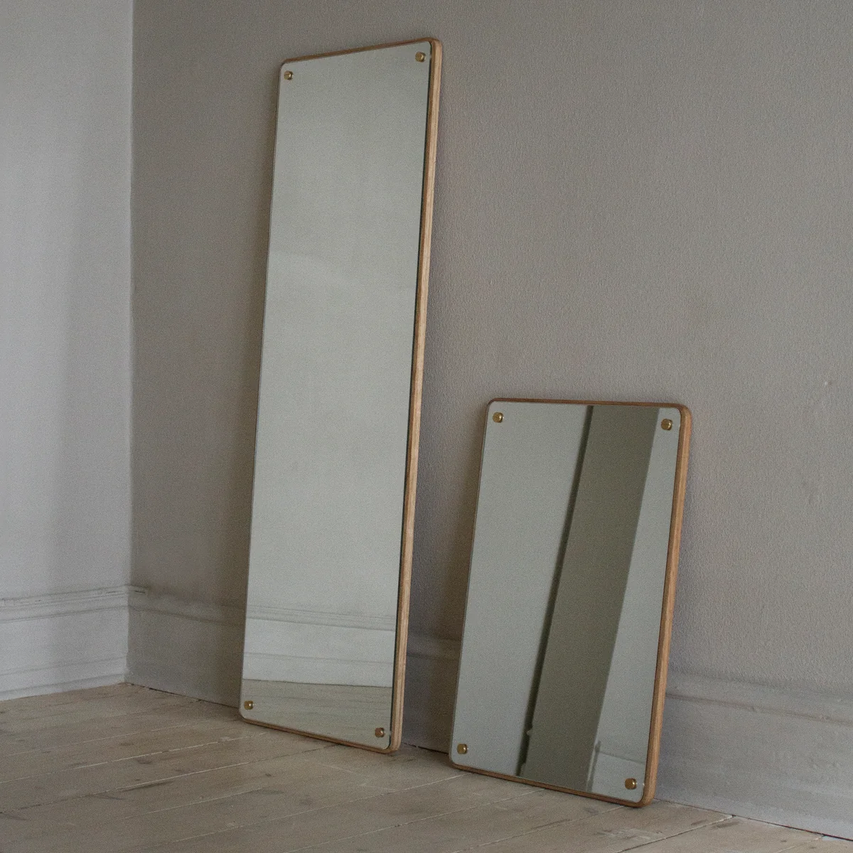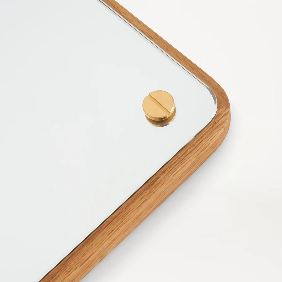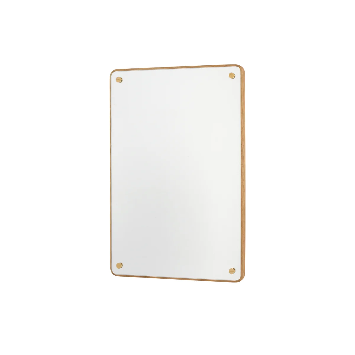 The RM-1 Rectangular Mirror from Frama is made of glass, oak wood and brass. Available in two sizes.