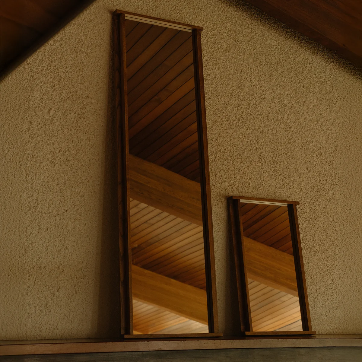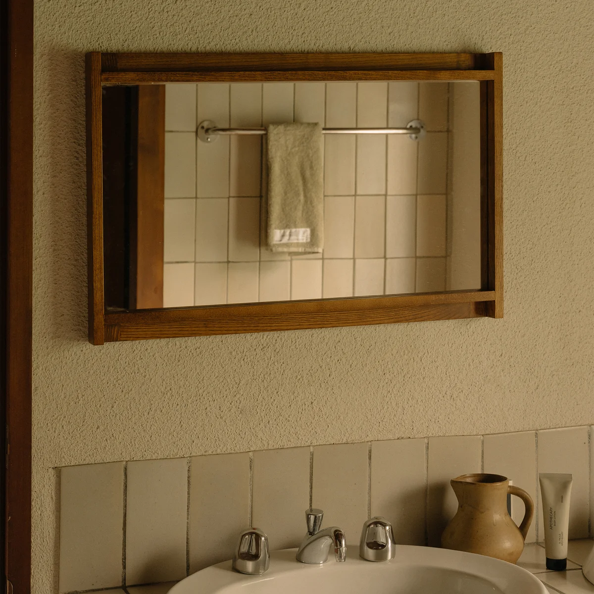 The Symmetry mirror, designed by Studio 0405, transfers the characteristic design language of the Symmetry series to a mirror object for the first time. Made from honey-colored, stained ash, the design picks up on the rhythmic repetition of the wooden planks and combines them with the reflective surface to create a harmonious overall picture. The fine framing and reduced profile underline the minimalist expression. Whether hung vertically or horizontally, the mirror brings natural warmth and architectural clarity to any room.