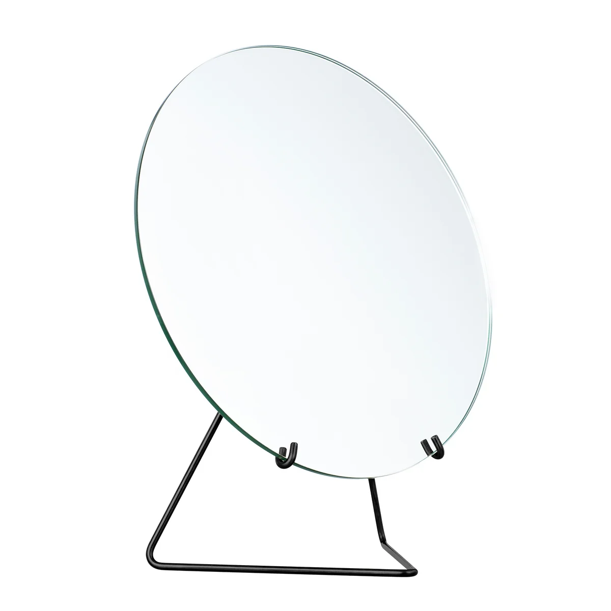 The table mirror from Moebe is characterized by its minimalist design, which fits perfectly into any ambience. Frameless and round in shape, the mirror glass is held only by a filigree metal wire, which provides stability despite its reduced form. The two materials used complement each other perfectly in form and texture, resulting in a harmoniously coordinated product.