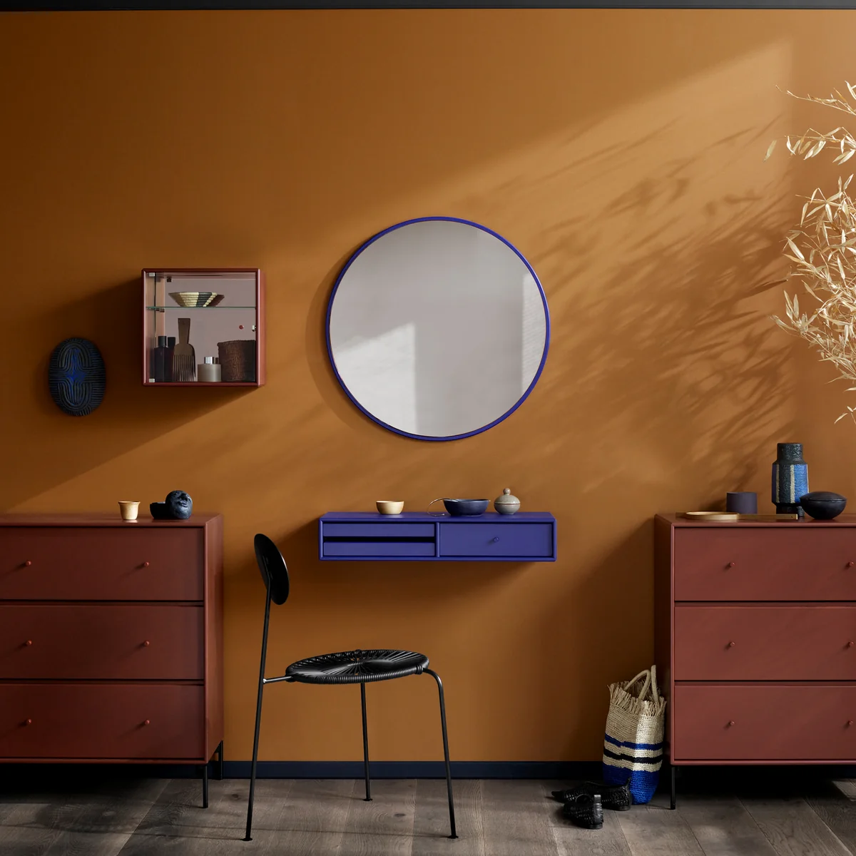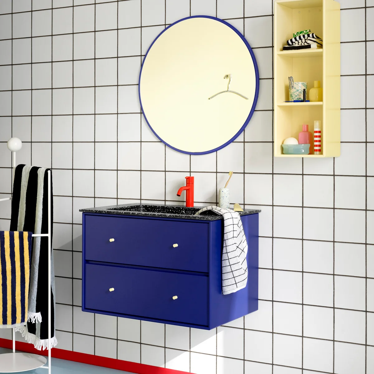 The Around mirror from Montana adds the finishing touch to the bathroom. It brightens up the surroundings and makes any bathroom shine. The thin mirror frame holds a timeless and classic look. Available in a variety of color finishes, the mirror can be matched to existing bathroom décor. Versatile to combine, the bathroom can be conjured into an individual wellness oasis.