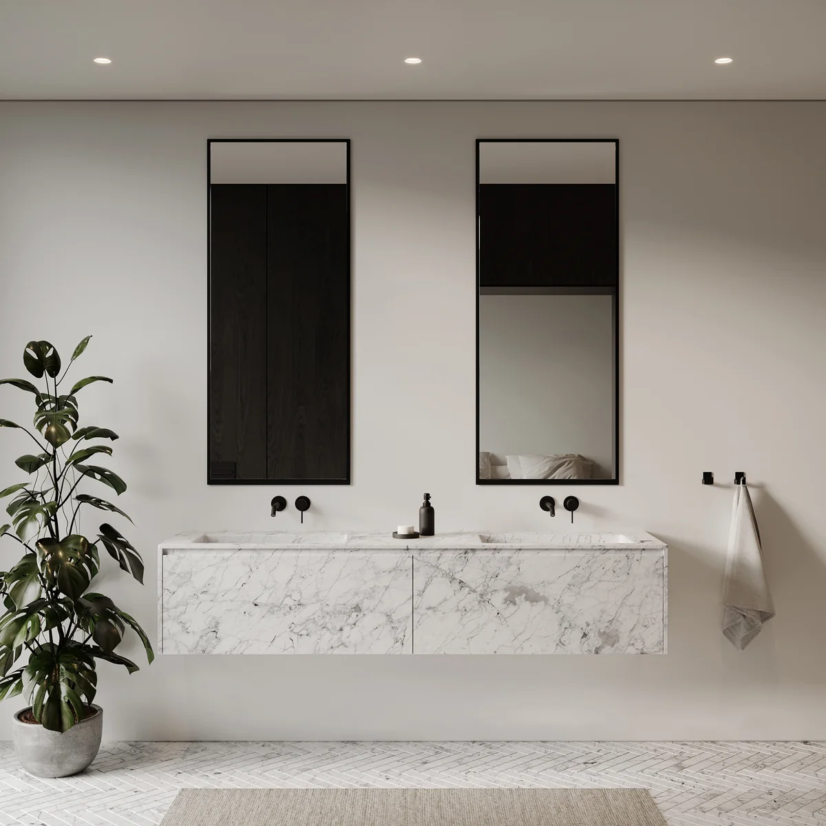 The mirror is available in different colors and sizes so that it can be used just as well in the hallway or bedroom as in the bathroom.