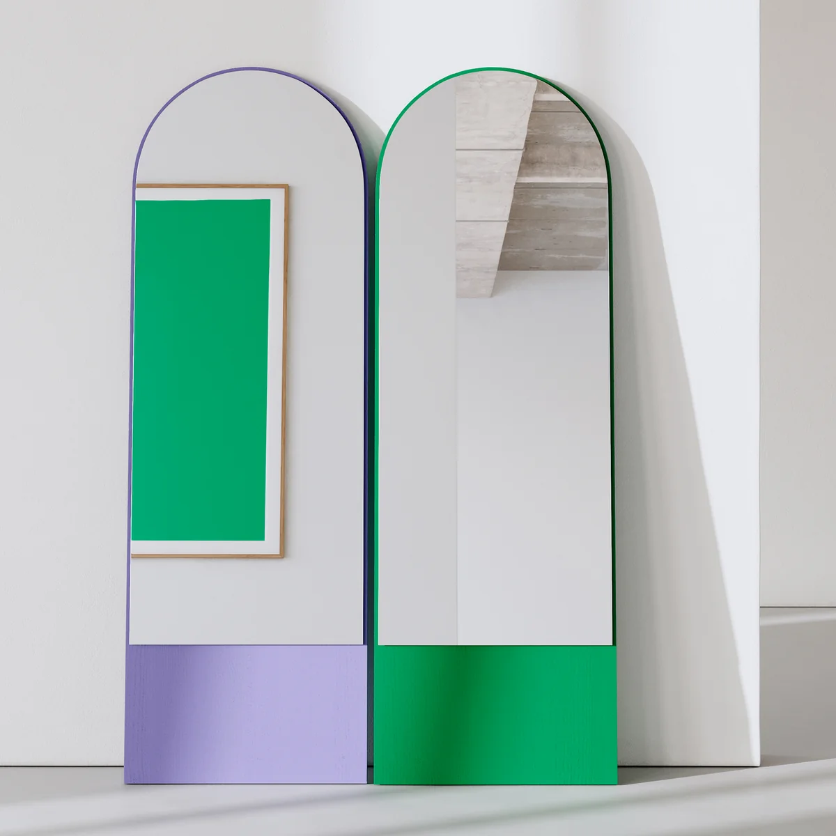 The silhouette is characterized by the Renaissance-style round arch of the early 2020s. The mirror makes a great claim to functionality and aesthetics, which is uncompromisingly maintained in every version of the mirror. Friedrich mirror is preserved. The harmonious proportions of mirror glass to lacquered ash veneer create an overall look that, depending on the choice of color, blends stylishly into any interior design or enriches the room with a striking presence. The Friedrich 21 mirror is particularly aesthetically pleasing when mounted on the wall. However, it can also be casually leaned against the wall.