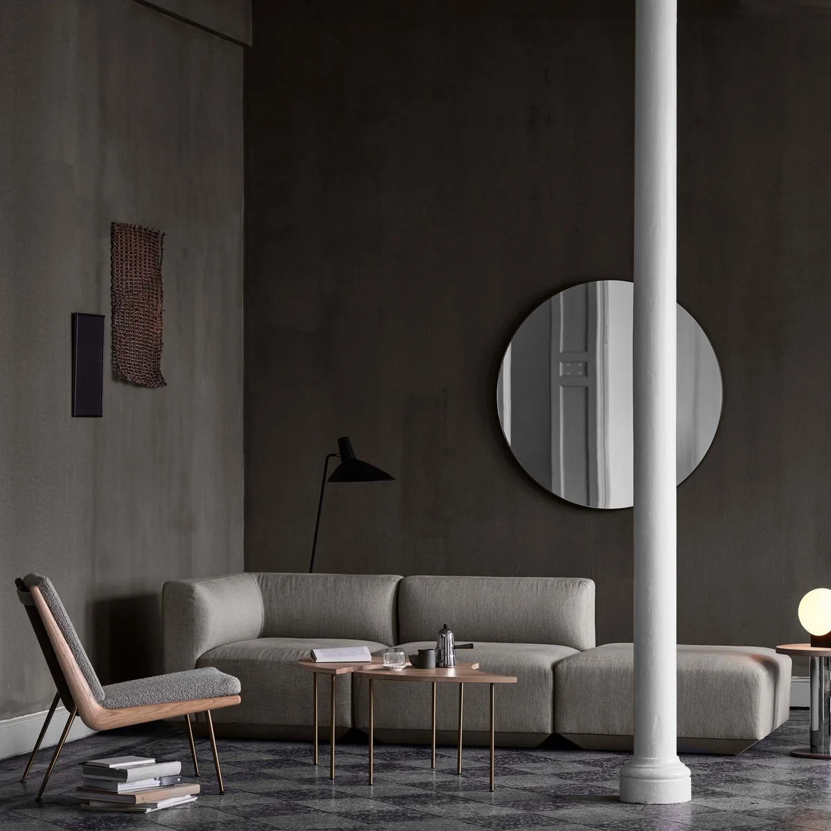 The Amore Mirror of & tradition belongs to the Collect series, a range of carefully selected and beautiful furniture and accessories. It was designed by the Space Copenhagen design studio, which gave the round mirror a very refined look with the help of a bronze brass frame and silver-coloured glass.