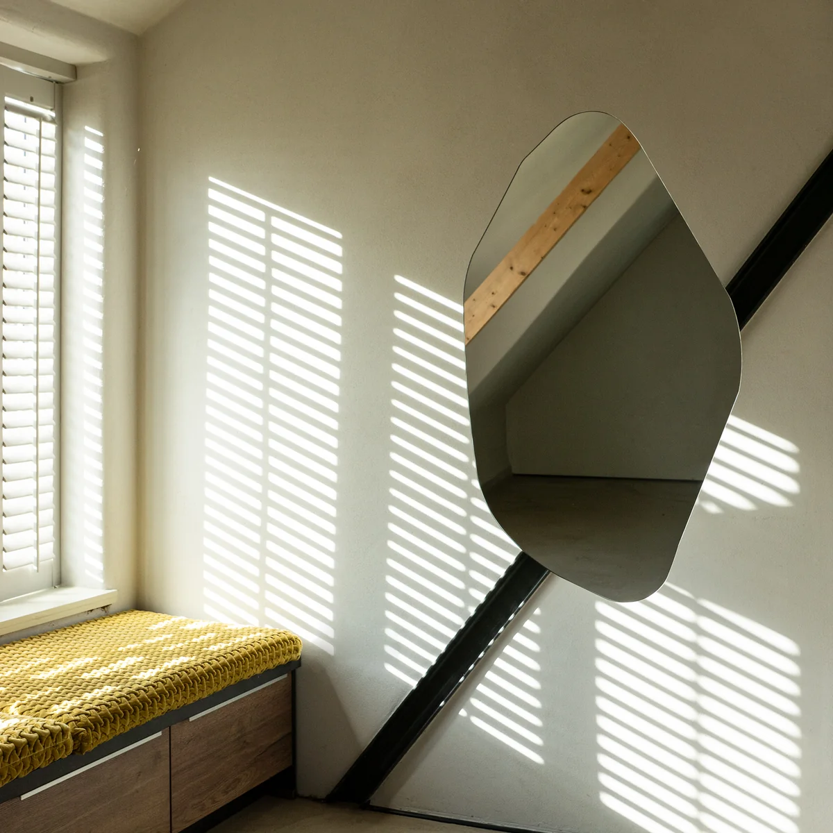 Asymmetrical wall mirror in an organic shape