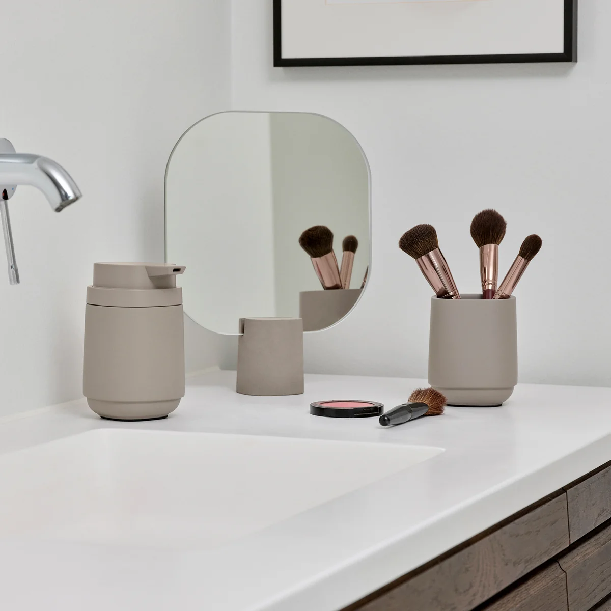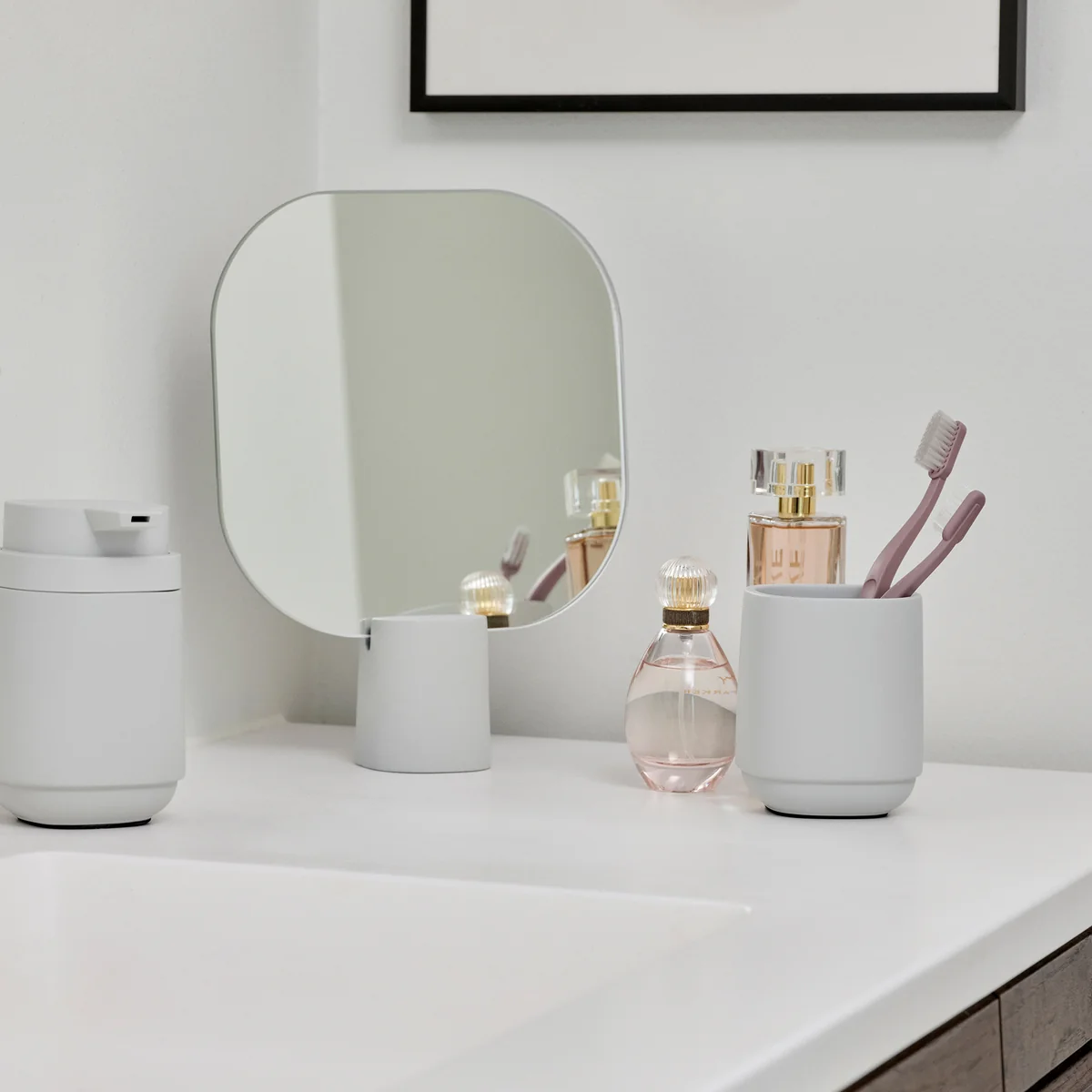 With its uncomplicated, organic design, this table mirror from Time table mirror from Zone Denmark with a toughened glass surface and a concrete base. It doesn't attract attention, but blends seamlessly into its surroundings, whether in the bathroom, bedroom or on a shelf in the hallway.