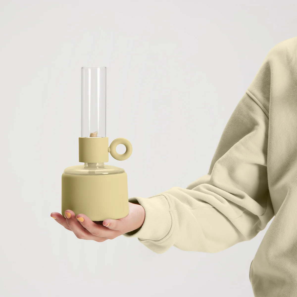 and subtle piece. While Flamtastique spreads the campfire feeling at every possible outdoor event, its little sister brings the vibes into the living room and illuminates the room with its warm and cozy light.