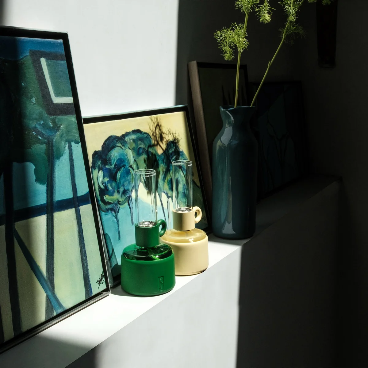 Based on the well-known and coveted Flamtastique oil lamp , Fatboy now delights with the mini version of the aesthetic and subtle piece.