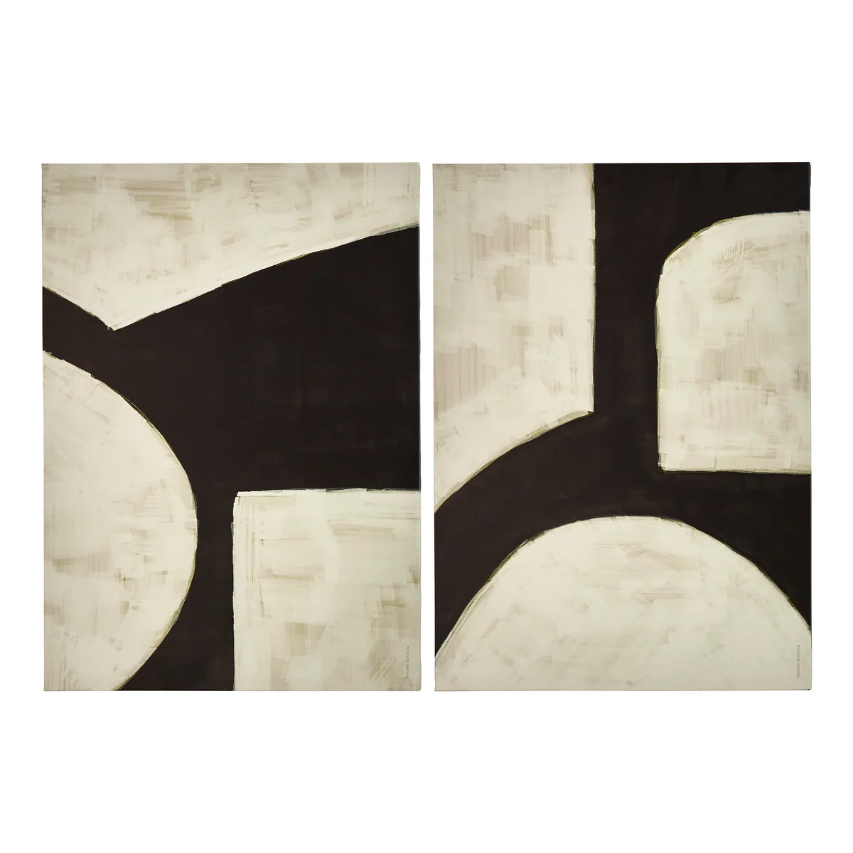 This two-piece wall art set brings a modern aesthetic to living or work spaces. The graphic motifs in black and off-white on canvas blend seamlessly into different interior styles. The minimalist designs give rooms character and a timeless look.