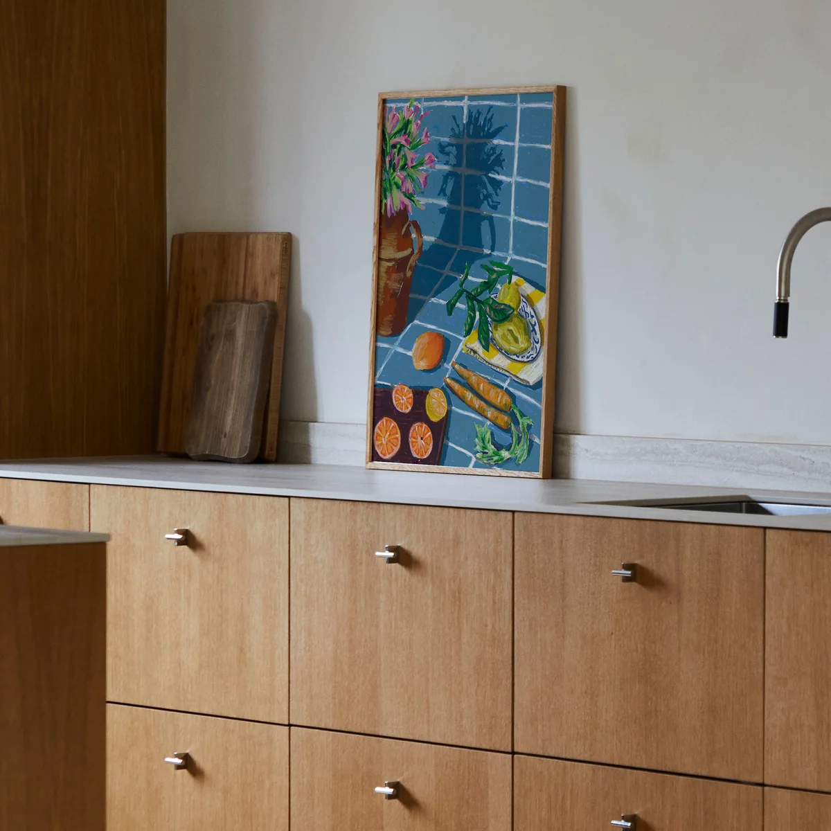Inspired by major artists such as Braque, Pollock and Malevich, the artist has employed various painting techniques, including the use of acrylic paints and varnishes, to add texture and depth to his work. The " Composition in Blue" poster is no exception and captivates every viewer with its dynamic composition.