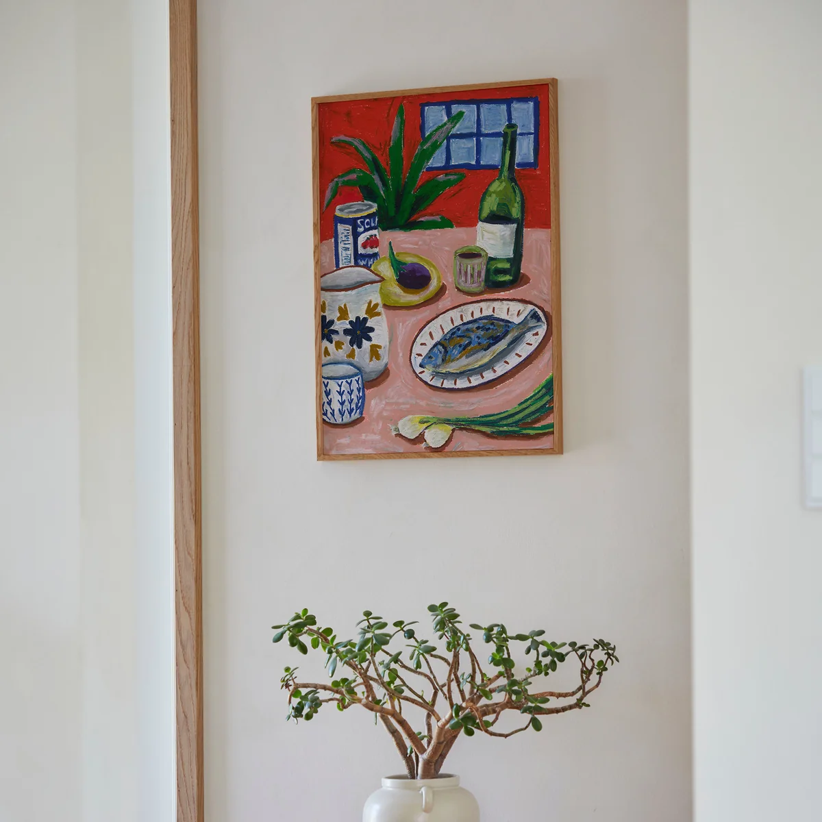 Inspired by great art icons such as Braque, Pollock and Malevich, Mardi focuses on the use of various painting techniques, including the use of acrylic paints and varnishes to add texture and depth to his works. The " Composition with Fish " poster is no exception and impresses with its dynamic composition.