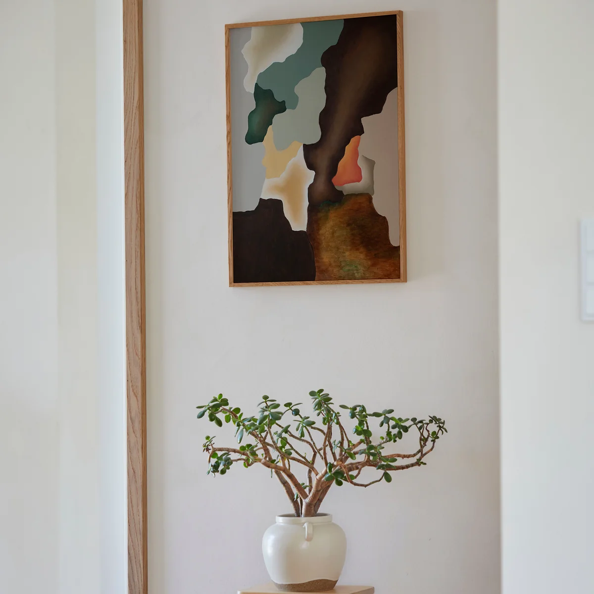 The design of this poster is a play of colors and shapes that stimulates the senses. The harmonious combination of different shades and abstract elements creates a visual feast that stimulates the imagination and brightens up the room.