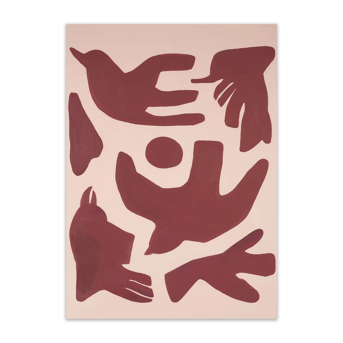 The Flying High Poster by Dutch artist Anne Olde Kalter for Paper Collective is inspired by the high skies and vast landscapes of her homeland. Flying High Is bold and poetic at the same time. Against a shallow, earthy pink background, abstract birds in a deep maroon color circle over the composition. The work provides a balanced touch - namely, it is light yet grounded. The combination of colors and shapes, on the other hand, create a feeling of weightlessness and strength.
