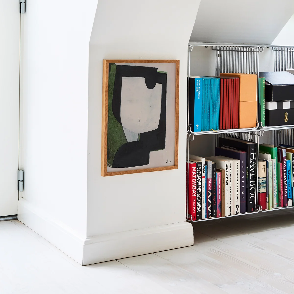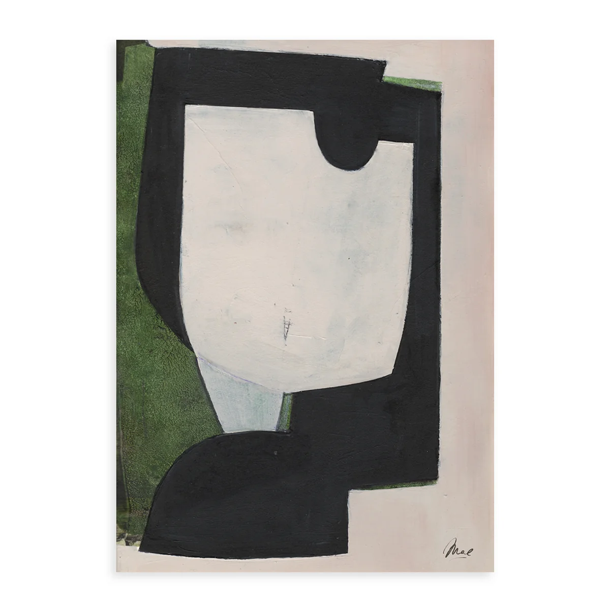 In Head-to-Head from Paper Collective by longtime collaborative artist Mae Studio for Paper Collective , a neutral black and white palette is punctuated by rich forest green accents. The sharp, yet organic shapes merge into a grouping of abstract figures that are in deep conversation with one another. Through the skillful use of acrylic paint on fine modeling paste, the two abstract forms come to life by highlighting their textures and depths.