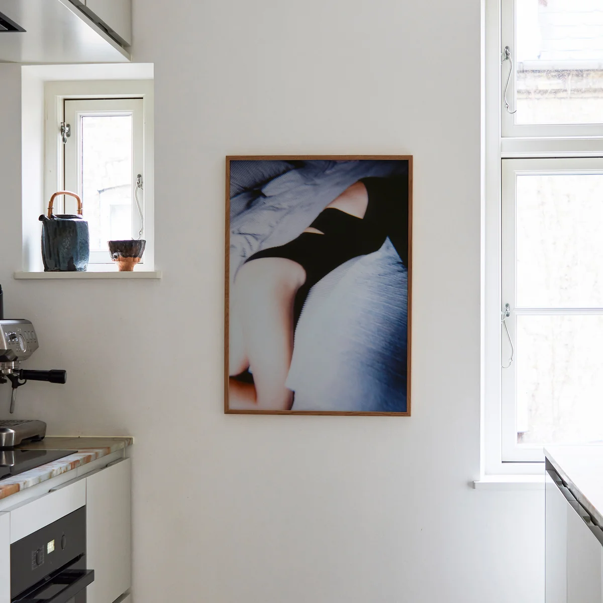 The Snooze Poster from Paper Collective presents an intriguing view of an intimate scene. In this work, a single figure lies on a bed wearing black clothing, creating a striking graphic contrast to the overexposed, soft gray surroundings. Through this voyeuristic approach, Bülow allows the viewer a unique insight into a private snapshot. "Snooze" not only captures the play of light and shadow, but also raises questions about privacy, individuality and the complexity of human emotions. This artwork invites the viewer to delve into the mind of the artist and the figure depicted, providing a rich experience for the viewer.