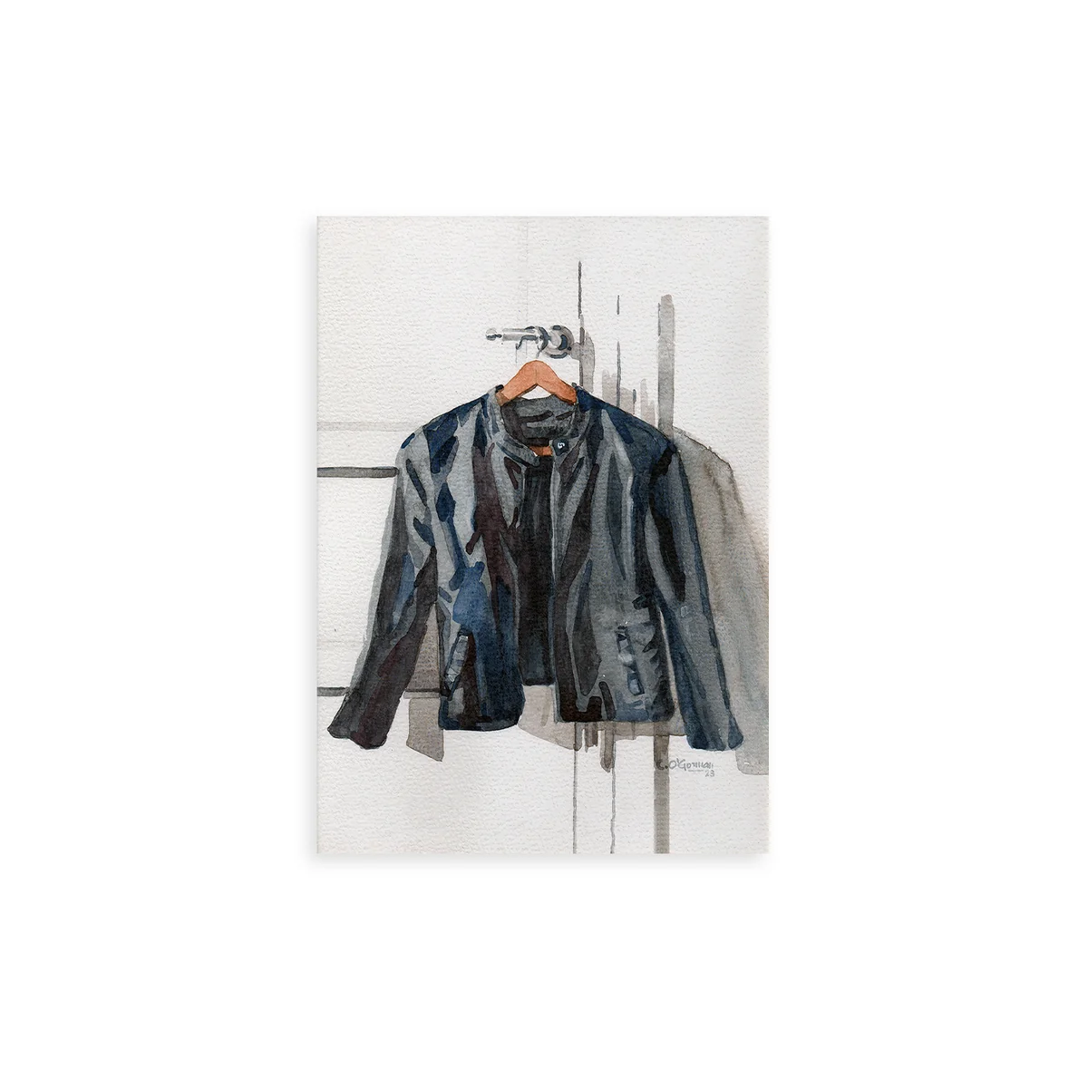 The Jacket Poster by Camila O'Gorman for Paper Collective takes pride of place and shines a light on the objects in our lives that need a little extra attention. Layers of watercolor create a soft, yet highly detailed composition as light and shadow play with the leather jacket.