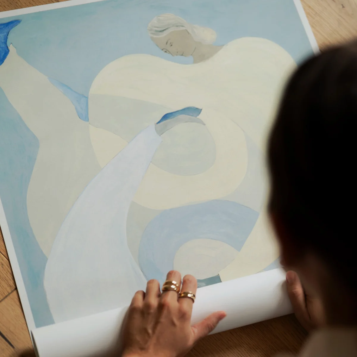 The Hold You - Blue fine art giclée print by Sofia Lind for The Poster Club inspires with its great printing technique. The dynamic motif captivates here with its depth of intense color nuances. In conjunction with the high-quality natural paper, the archiving of colors and maximum longevity are guaranteed.