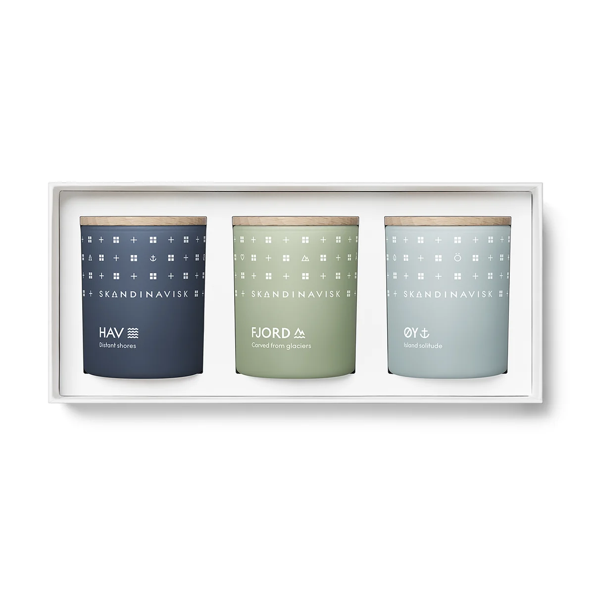 The Escape candle gift set from Skandinavisk lets you experience the untouched nature of Scandinavia in your home. This carefully curated set contains a selection of four enchanting scented candles that capture the tranquillity and beauty of the Scandinavian landscape. Perfect as a gift or for personal enjoyment!