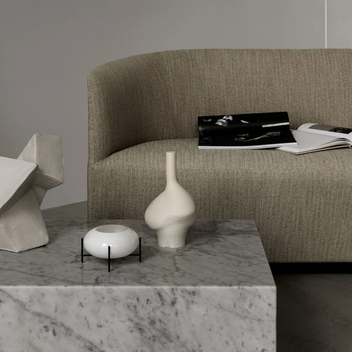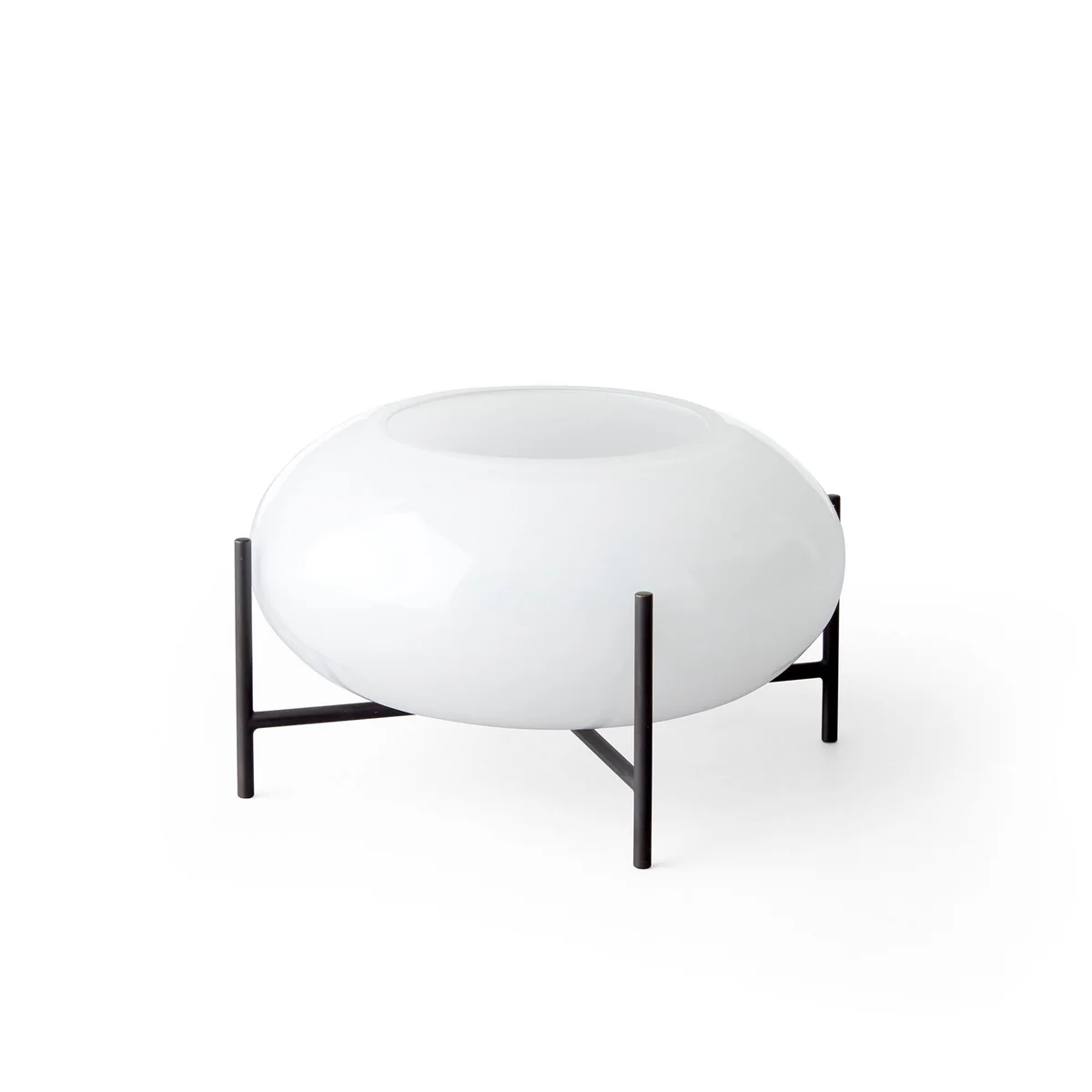 The Échasse Hurricane tea light holder is a wonderful addition to the Échasse series designed by Theresa Rand, consisting of bowls and vases. The design is characterized by a filigree brass frame that supports the orbital shape made of opal or smoked glass. The combination of softly shaped glass and the straight-lined frame sets noble accents in any ambience.