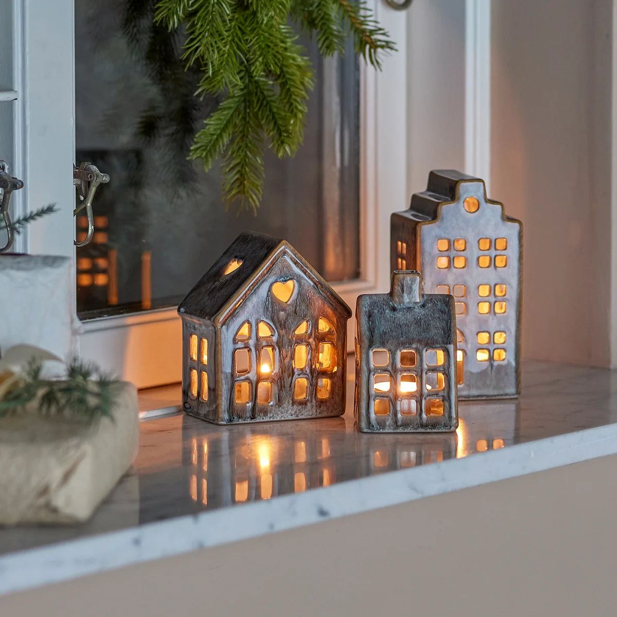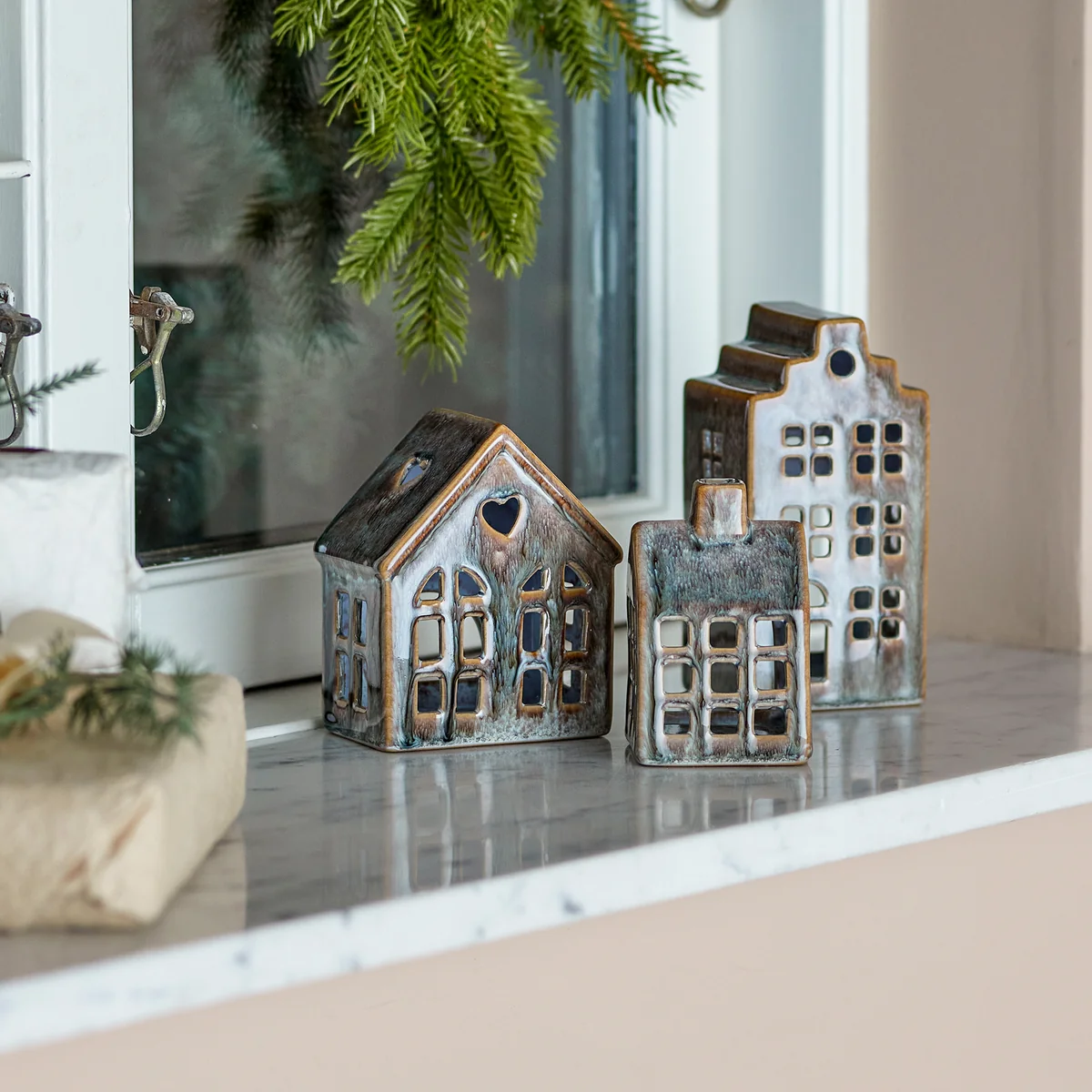 The Kalia tea light holders from Bloomingville bring soft light into the room with their lovingly designed little houses. Small windows allow the glow of the tea lights to shine through and create a warm, homely atmosphere. Each piece features subtle shades of color, making it an individual eye-catcher on the windowsill, on the shelf or as part of a Christmas arrangement.