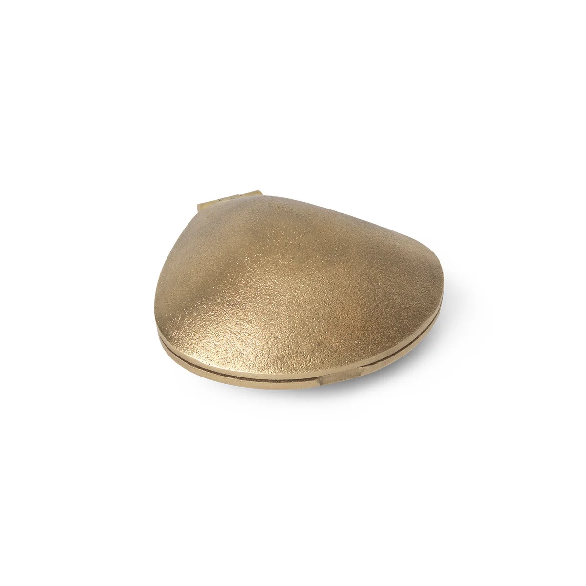 The Clam Tealight holder from the house of Ferm Living is a noble, portable tealight holder, which is made of cast brass. The shell can be closed simply when not in use. The tea light holder can be ideally placed throughout the living area, as well as can be Clam be used at picnics or other outdoor activities to provide cozy, soft light.