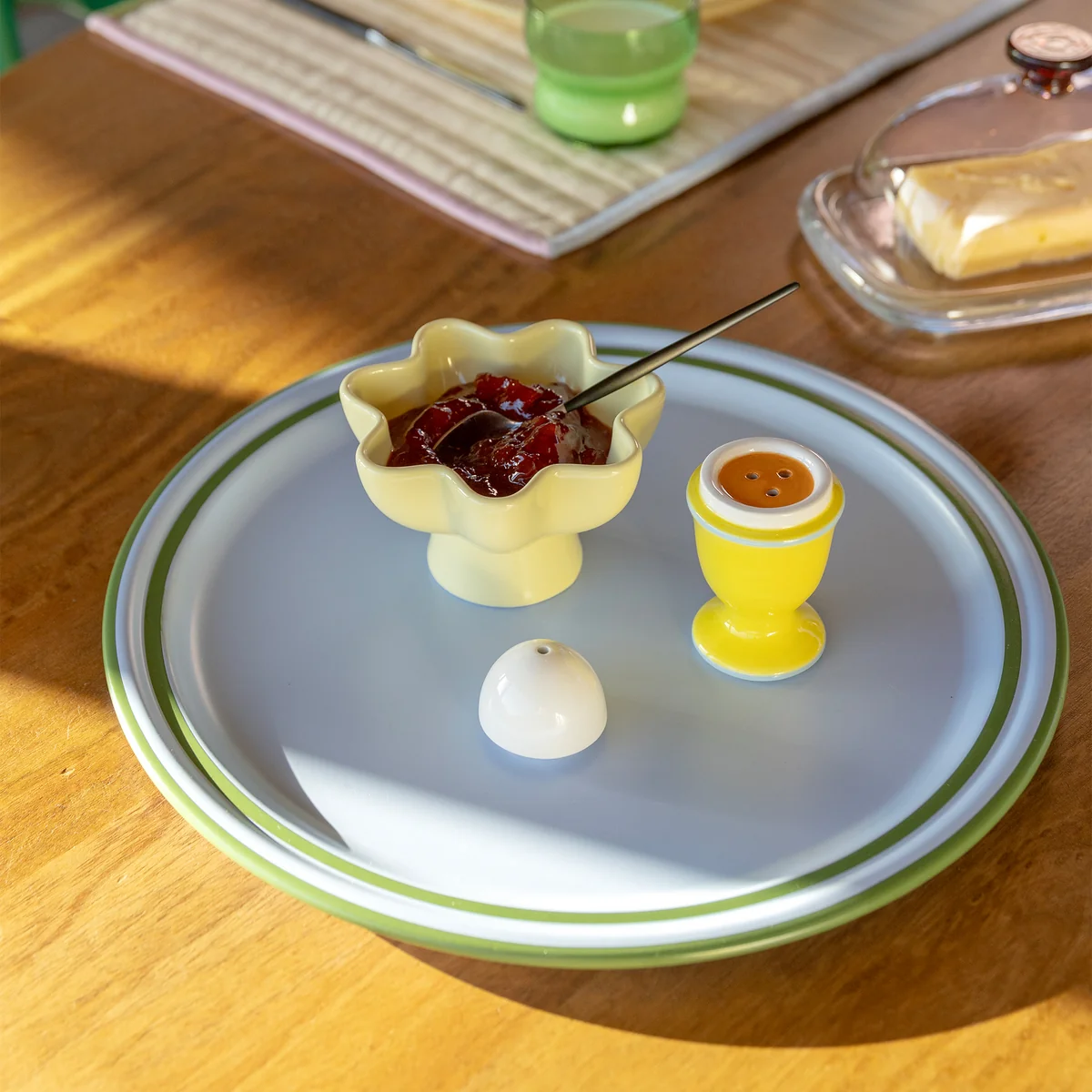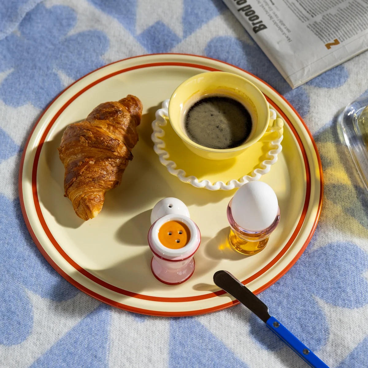 Made from robust metal with a seamless pressed surface, the tray creates a smooth, elegant look and is also durable for everyday use. With its cheerful color palette and iconic & Klevering design, the tray can be used in many different ways Vano tray is versatile - whether for breakfast, on the terrace or at dinner parties. Its size offers plenty of space for glasses, plates and serving utensils, while the clear shape makes it easy to combine with other table accessories.