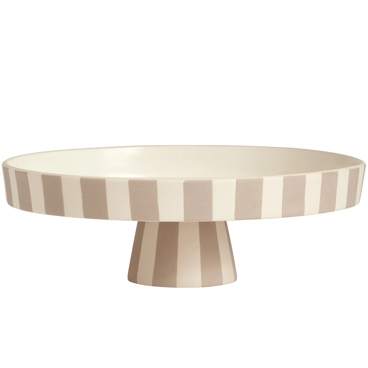 The tray is handmade and made of ceramic, which is then decorated with stripes. It can be cleaned Toppu with a damp cloth.