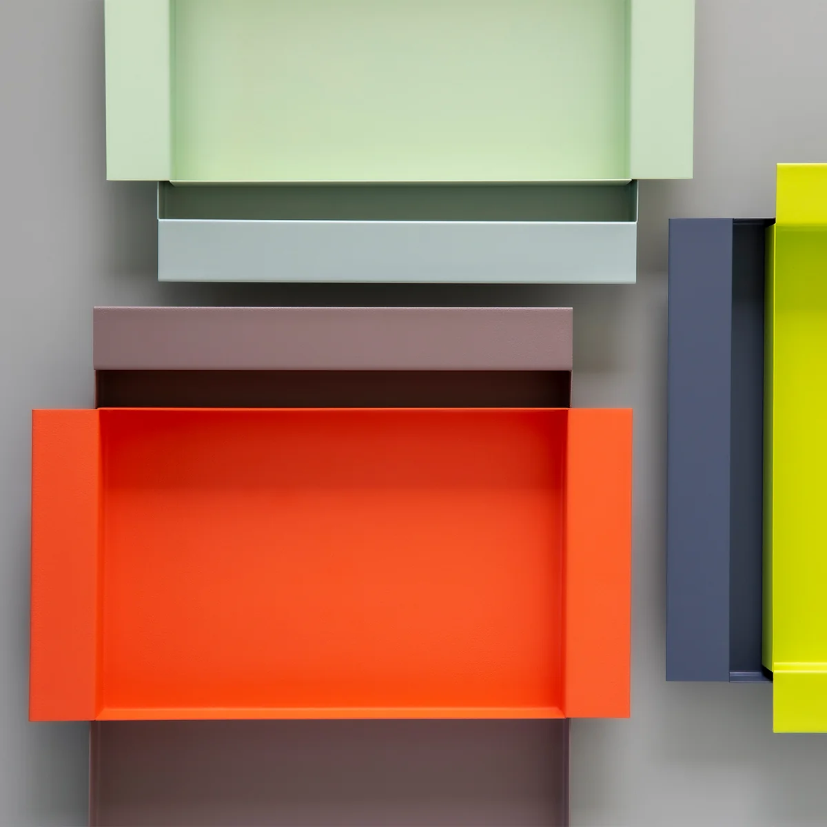 The Rio metal tray from Remember stands out with its bold monochromatic color and distinctive, prominent edges. Available in a variety of size and color options, the purist trays can be used to display decorative objects. Whether candles, photo frames, small mementos or small everyday objects that should always be at hand - the metal tray is a multifunctional talent that sets eye-catching and meaningful accents in the interior.