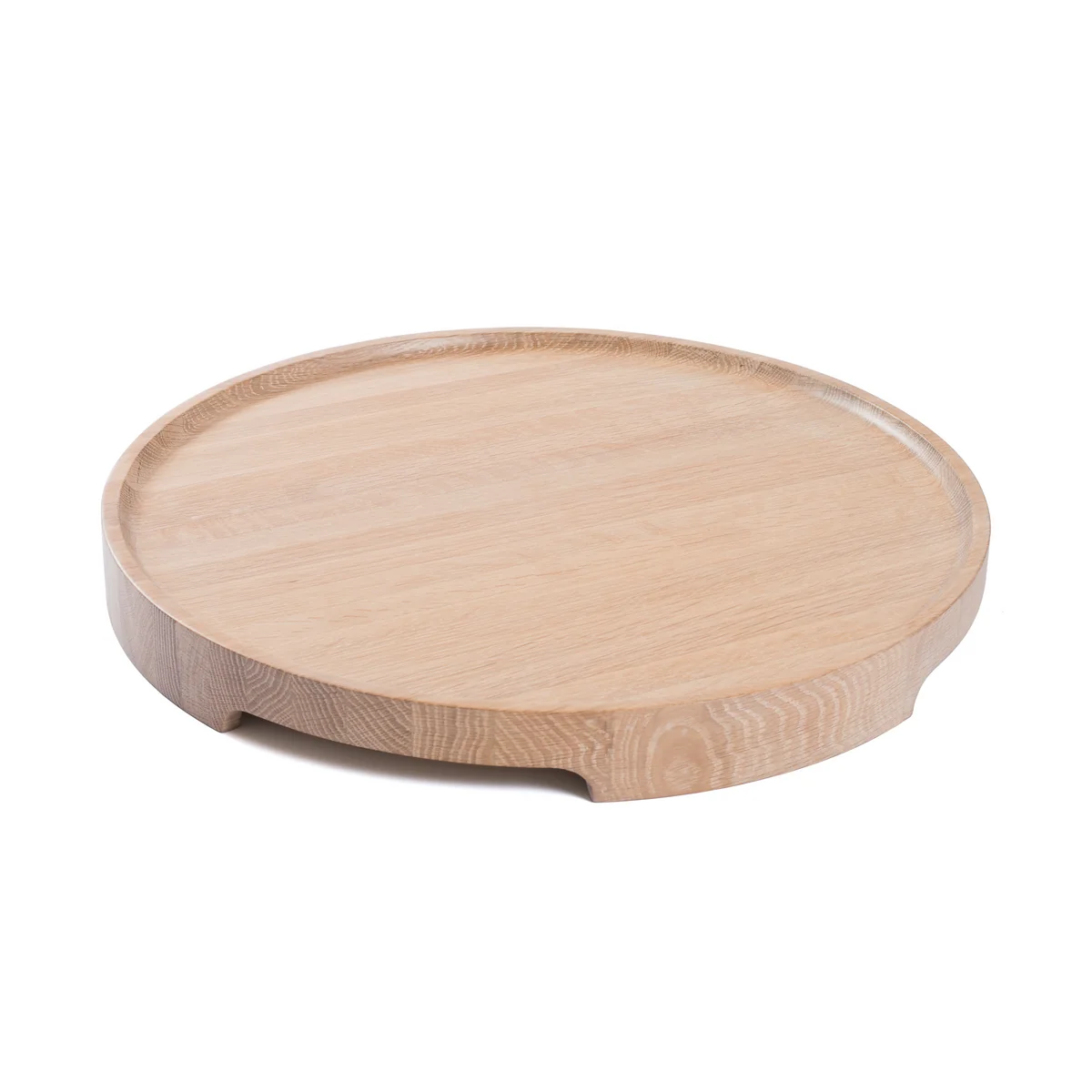 The tray is handmade from solid wood. The cut-outs on the edge make for a good grip. In addition, the hand-stitched seams of the stool come into their own when the tray is placed on them. The wooden tray is matt lacquered, water-resistant and food-safe. Tapas, appetisers, or cheese can be stylishly presented on it. The tray is also ideal for breakfast in bed and is suitable for outdoor use thanks to the lacquer.