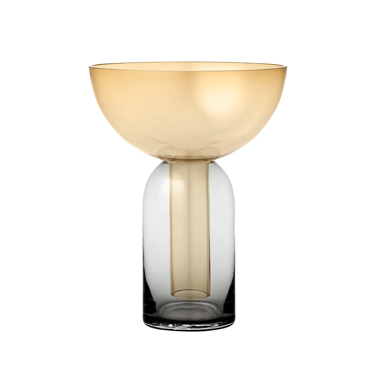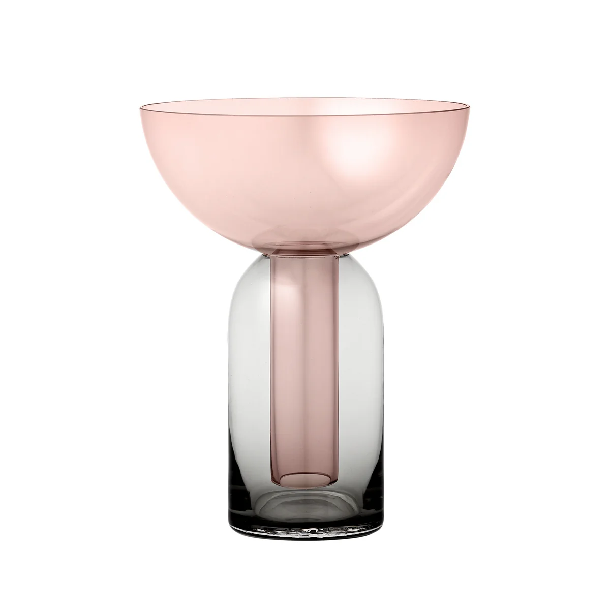 The Torus Vase by AYTM is characterized by its special glass-in-glass optics, which provides a great eye-catcher. While the clear basic glass has the simple shape of a classic vase, the coloured glass is reminiscent of a funnel, with a wide opening. Both elements form a harmonious connection with each other and merge into one unit.