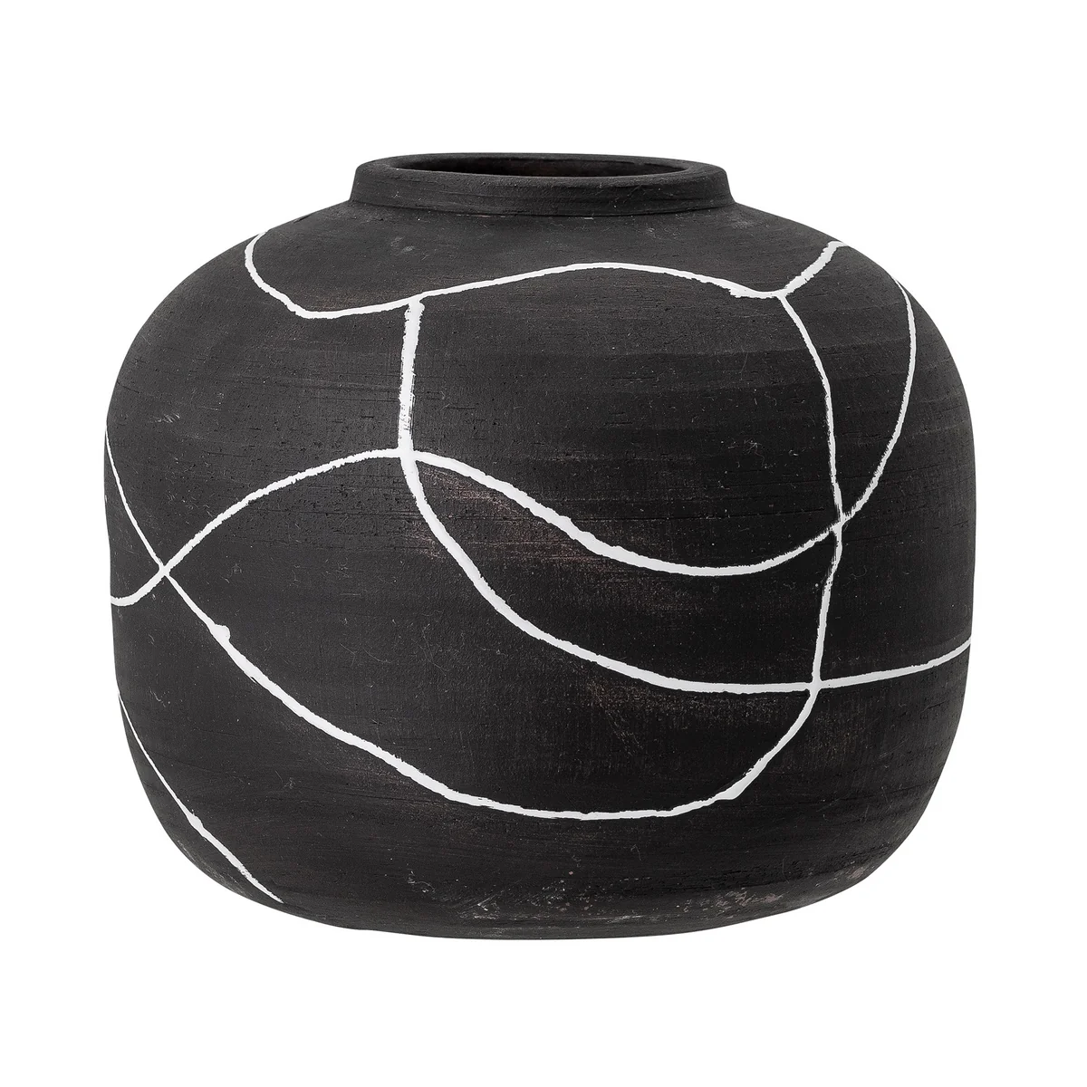 The Niza vase from Bloomingville is a decorative and slightly dramatic decorative vase with its contrasting black and white pattern. The vase is made from terracotta in a matte black color and decorated with a glossy white pattern. Each vase is decorated and painted by hand, making each vase unique. Wherever you want to put this vase, the black color will contrast beautifully with the table, windowsill, dresser or shelf it sits on.