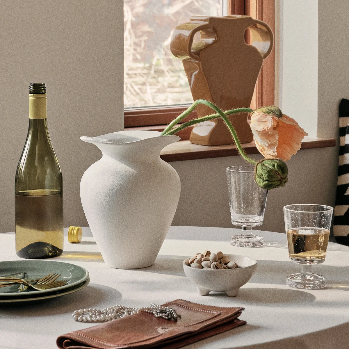 With its minimalist design and fine craftsmanship, the Florentina vase embodies understated elegance. Thanks to its neutral, cream-colored surface, it blends seamlessly into various interior styles, from modern to traditional. Whether on the dining table, mantelpiece or windowsill, this vase adds a sophisticated and artistic touch to the room.