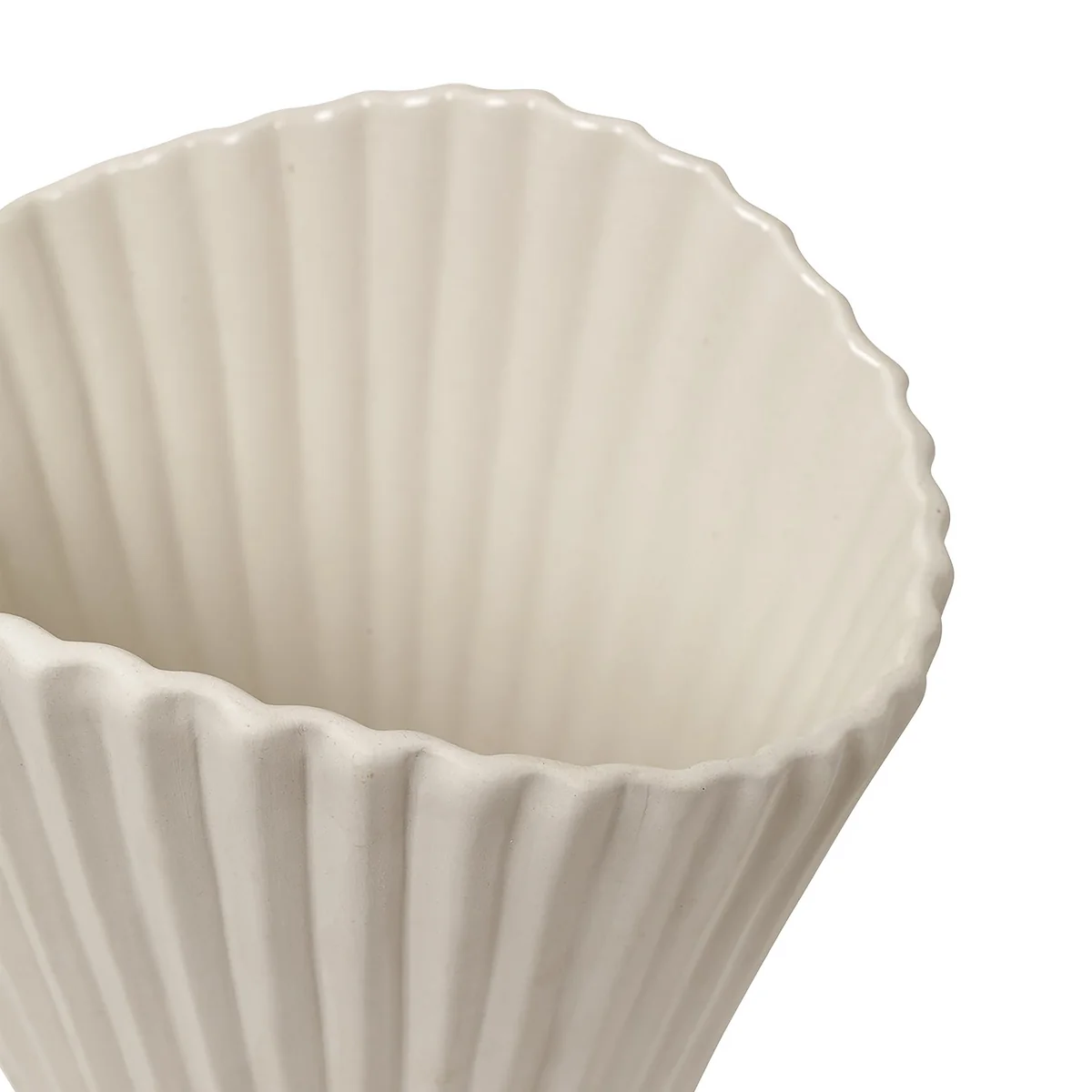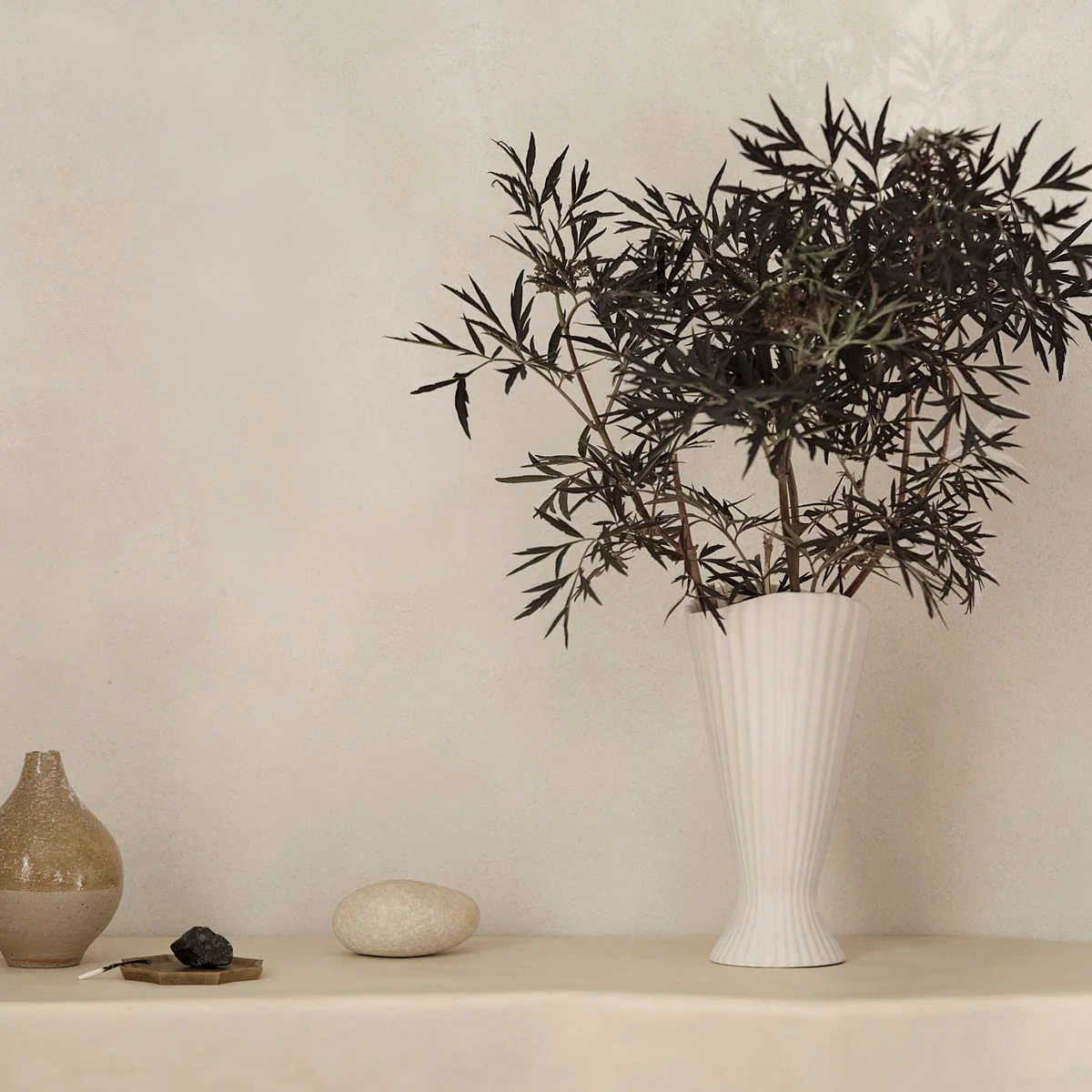 The Fountain vase from the Danish label Ferm Living immediately attracts everyone's attention! The elegant decorative piece captivates with its gentle expression. Fountain It is inspired by the classic shape of a fountain. Ferm Living's vase can be wonderfully filled with fresh, dried flowers or branches. The Fountain vase can also be used on its own as a decorative object. The matt exterior contrasts beautifully with the clear glaze on the inside.