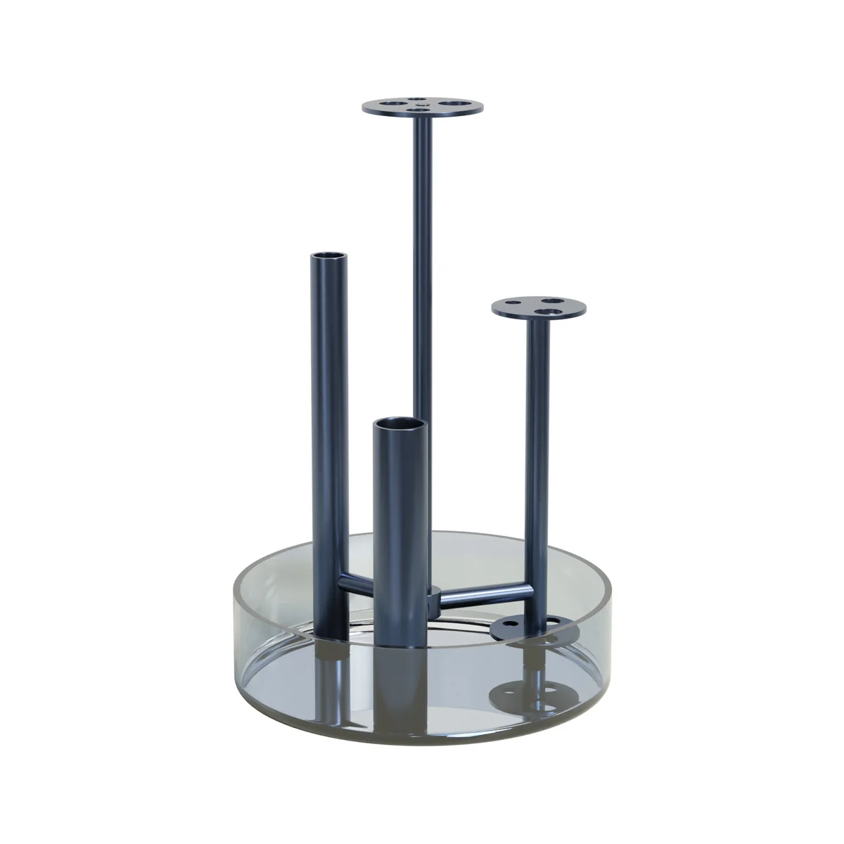 The Ikeru Vase of the Danish manufacturer Fritz Hansen were created by designer Jaime Hayon and are inspired by the Japanese art of 'Ikebana'. The unusual design of the vase emphasizes the uniqueness of each flower and ensures that the individual flowers can be shown off to advantage at any angle. The water in the glass bowls underneath keeps the plants fresh.