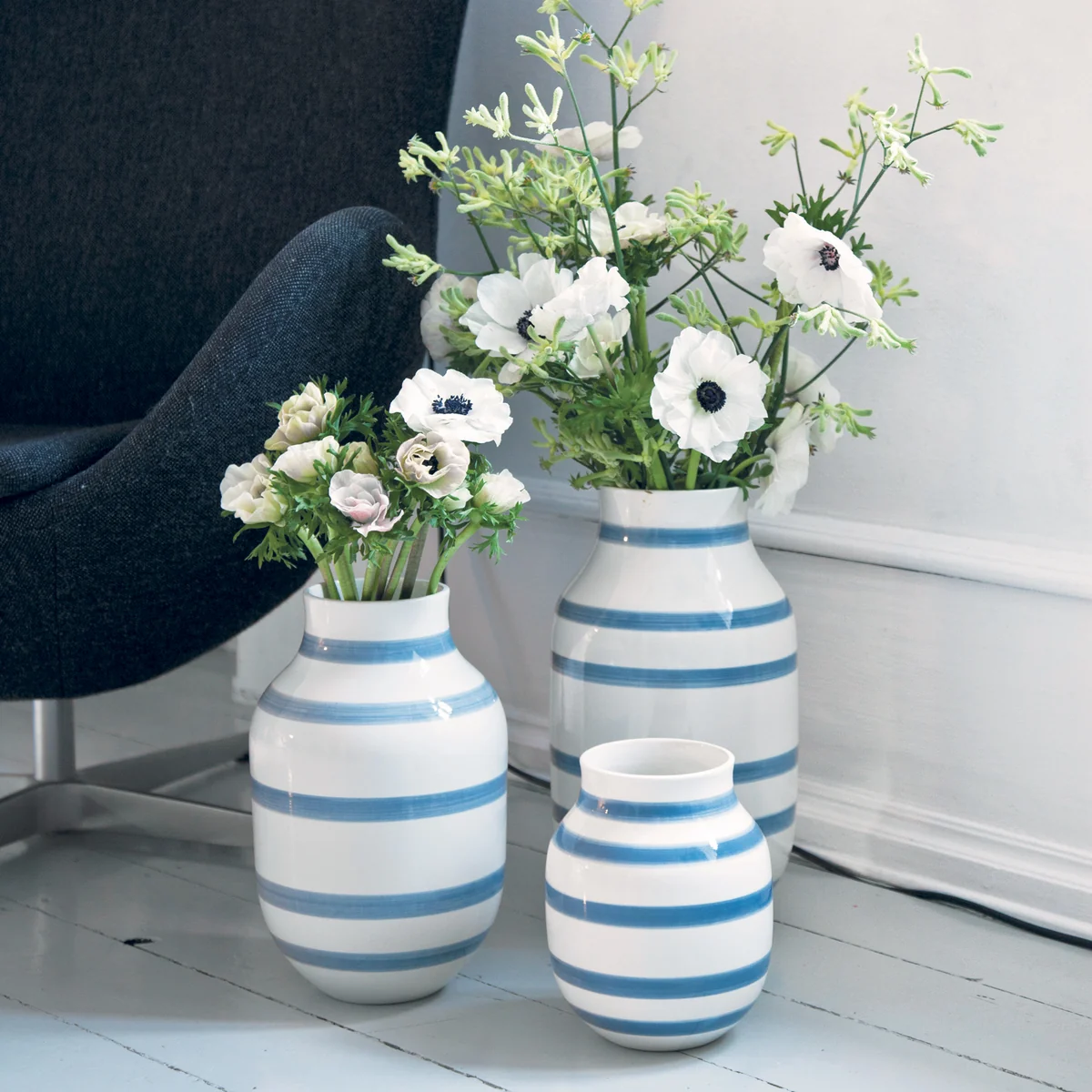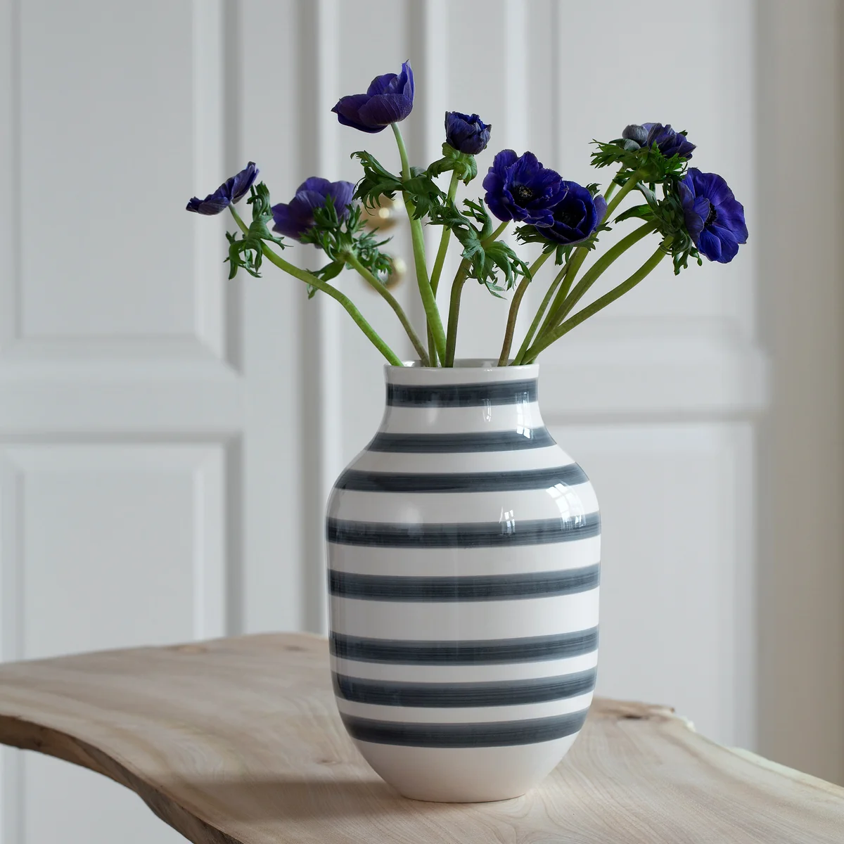 An unmistakable stripe design distinguishes the Omaggio vase from Kähler Design . The combination of elegant stripes and a soft shape with gentle curves brings a lively dynamic into any room.