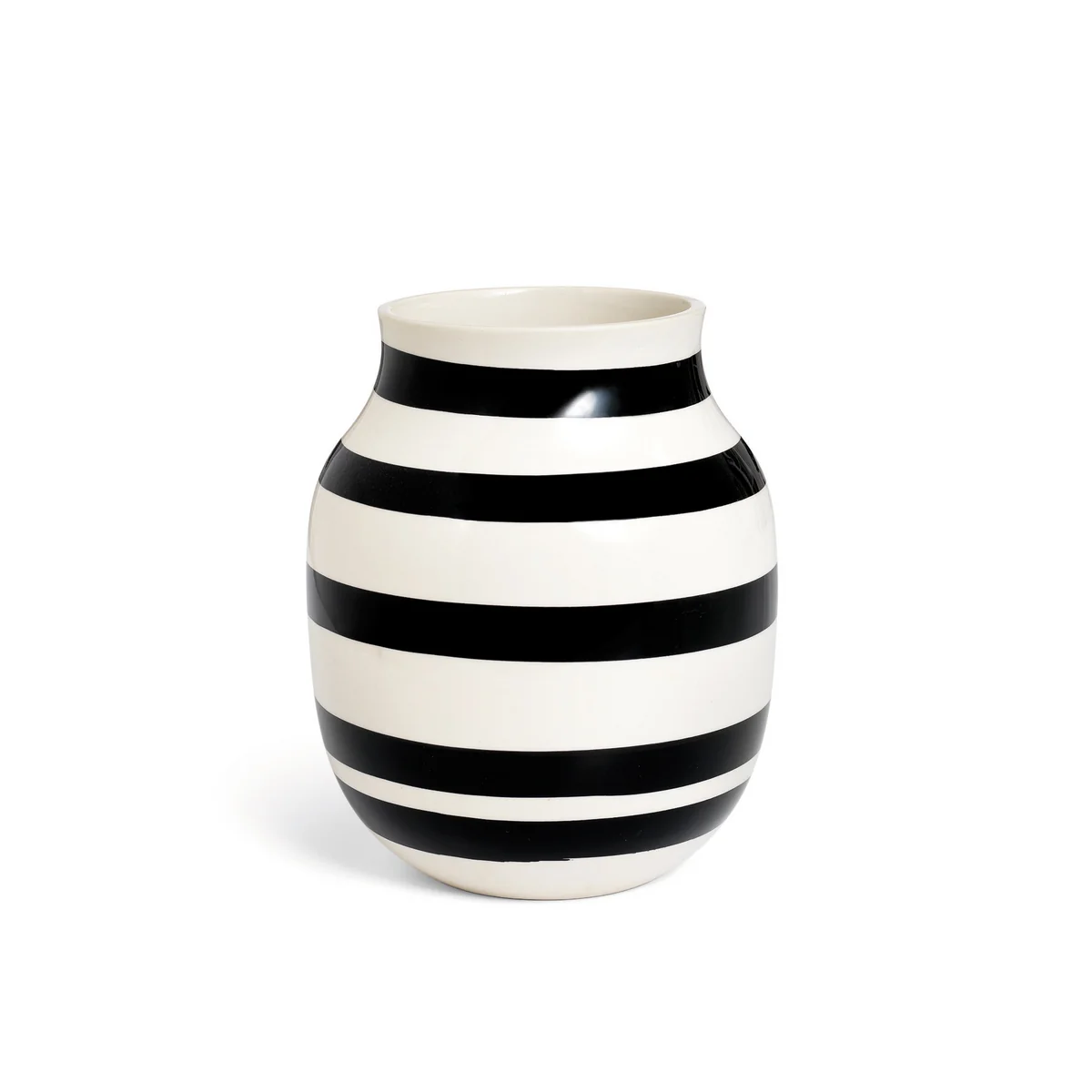 An unmistakable stripe design distinguishes the Omaggio vase from Kähler Design . The combination of elegant stripes and a soft shape with gentle curves brings a lively dynamic into any room.