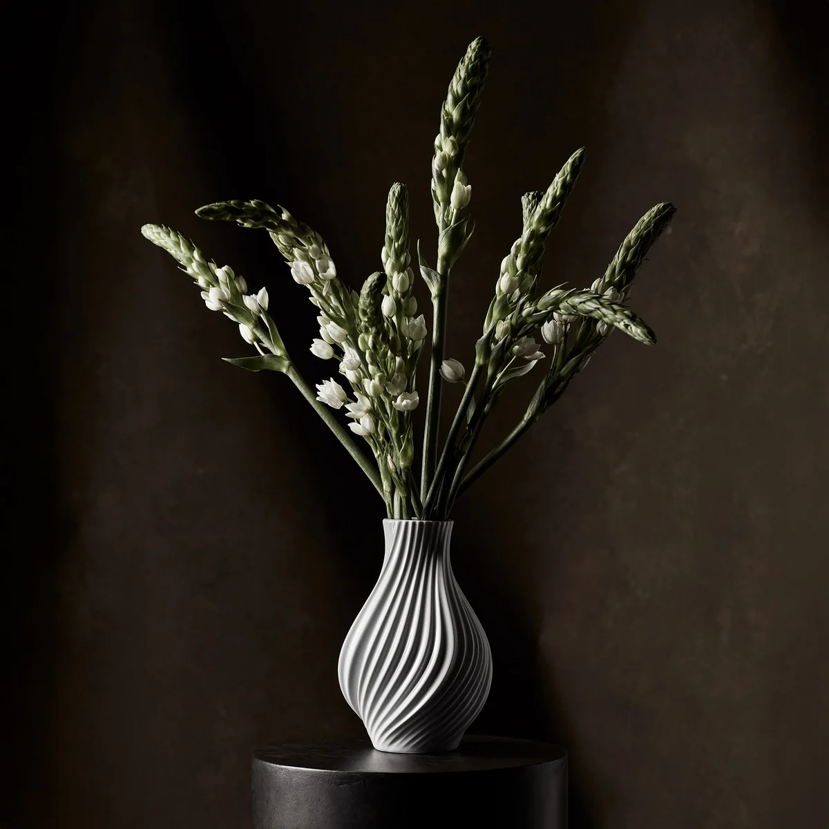 - Porcelain vase with sculptural spiral shape